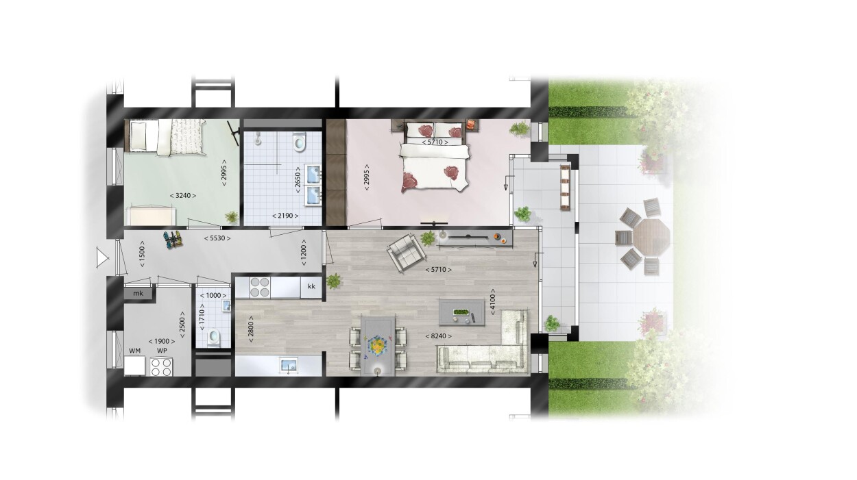 De appartementen op de begane grond beschikken bovendien over een aangrenzende tuin, wat extra wooncomfort en buitenruimte biedt. De grotere hoekappartementen hebben twee balkons.