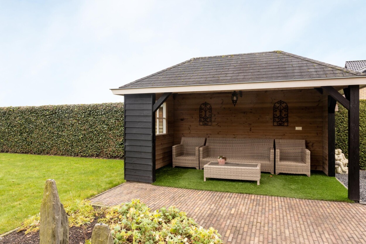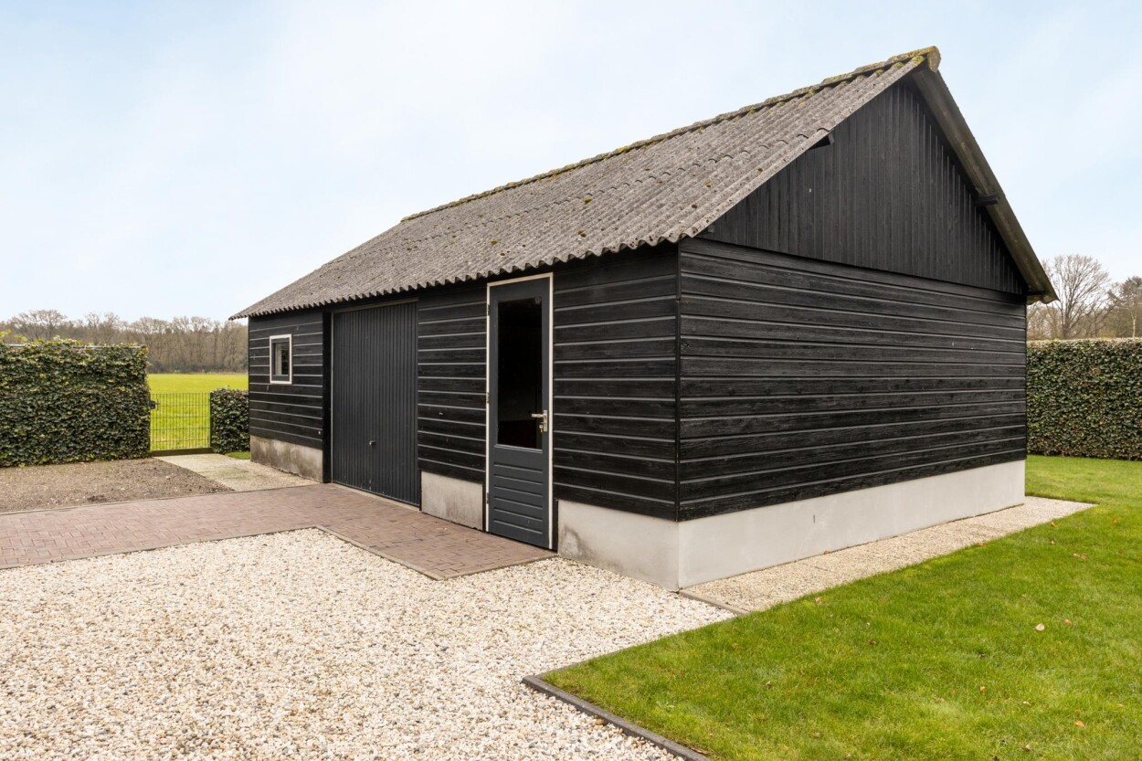 Naast alle bergruimte in de garage is er nog een vrijstaande schuur. Deze is opgetrokken met een stenen borstwering en houten gevelbekleding. Toegang middels een garagedeur en loopdeur.