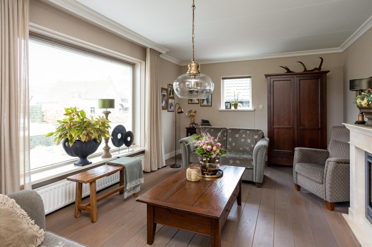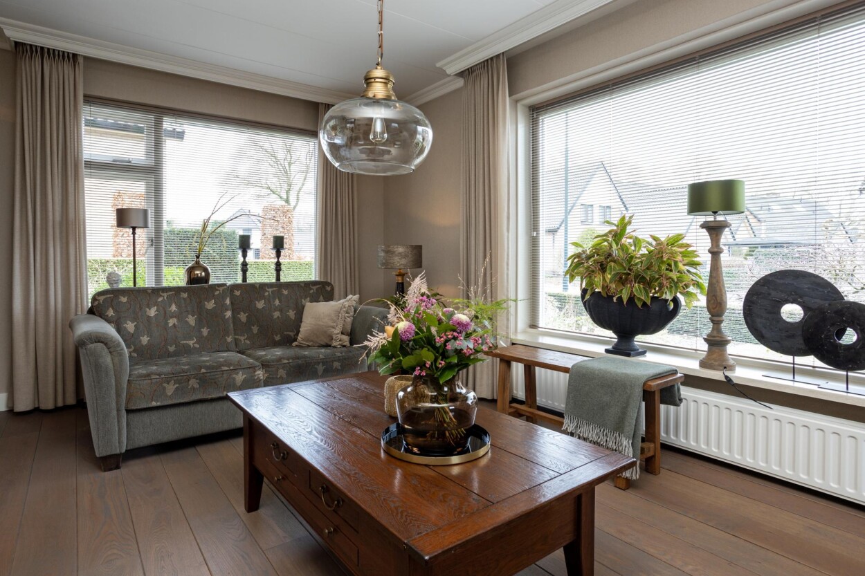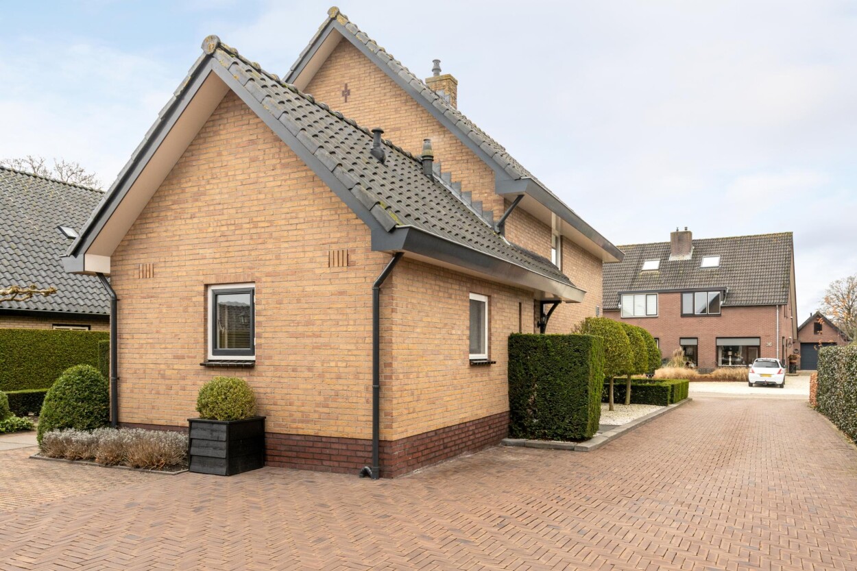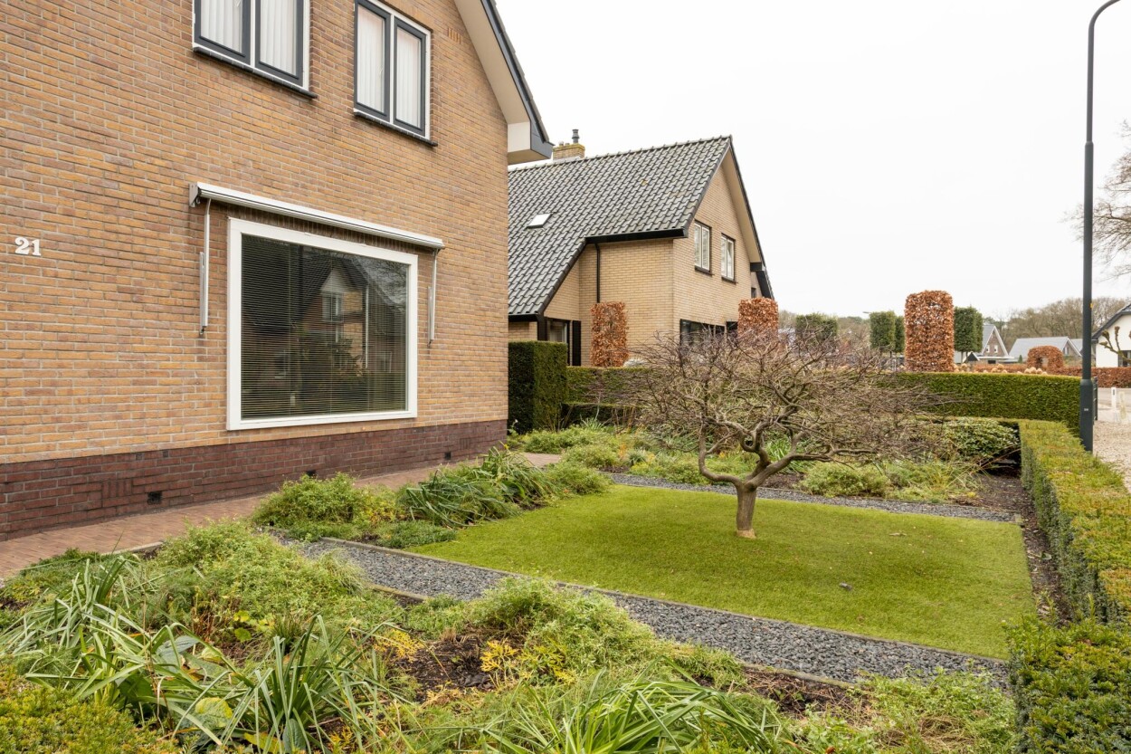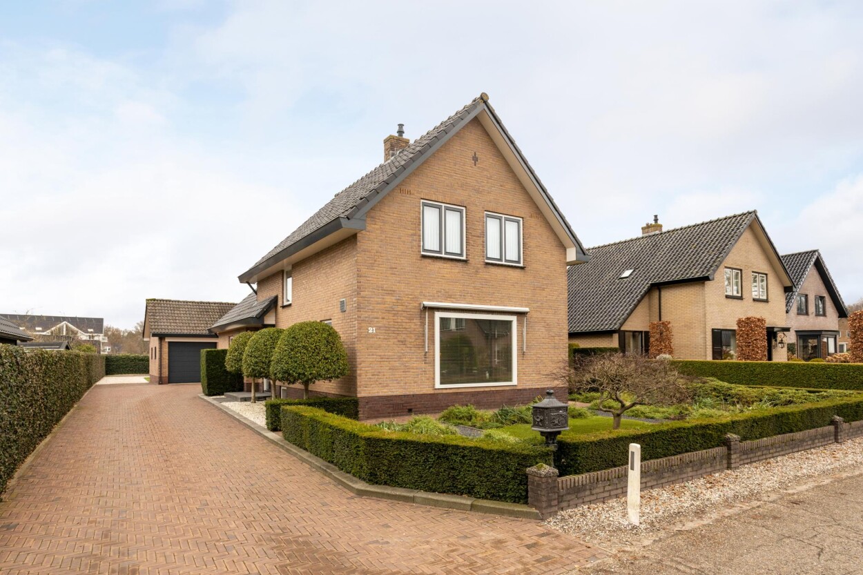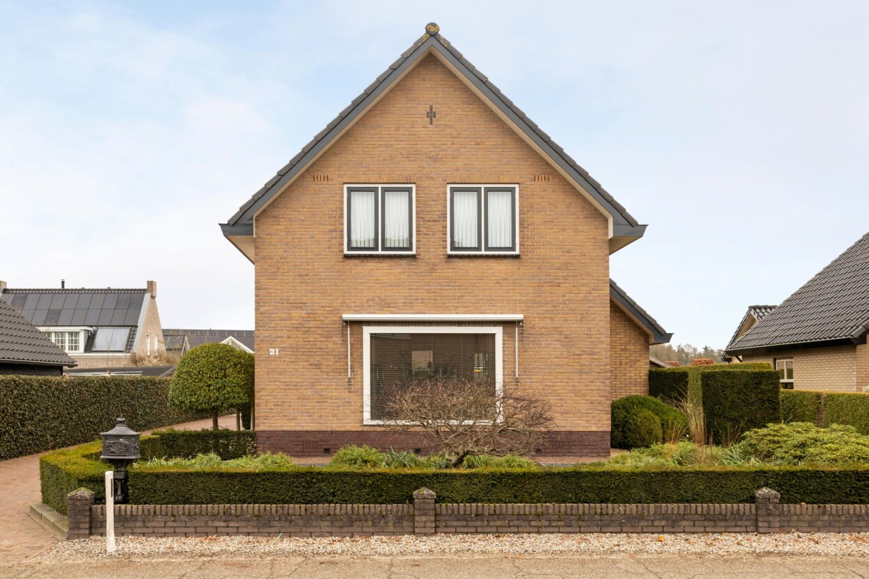 Wat een visitekaartje! Als iemand ergens meer dan vijftig jaar woont zegt dat vaak iets over de plek, maar in dit geval ook dat er hier met heel veel liefde en zorg gewoond is. Net in de overgang van de bebouwde kom naar het buitengebied, mogen wij u verzorgde en uitstekend onderhouden VRIJSTAANDE WONING met GARAGE en BIJGEBOUW te koop aanbieden. De woning is door de huidige eigenaren gebouwd in 1970, en hebben deze in de loop van de jaren met zorg onderhouden en bewoond. Ook hebben er in de jaren verschillende aanpassingen, verbeteringen en uitbreidingen plaatsgevonden, waarbij ook aan duurzaamheid is gedacht. Zo zijn bijvoorbeeld de muren, vloeren en de plafonds na-geïsoleerd, waardoor er nu beschikking is over een energielabel C. Door de uitgevoerde uitbreidingen is er nu veel praktische woonruimte. Gelijkvloers vindt u bijvoorbeeld een ruime woonkeuken met eethoek aan de achterzijde, en de woonkamer aan de voorzijde. Ook is er op de begane grond een badkamer gerealiseerd, met aangrenzend nog een praktische bijkeuken. Op de bovenverdieping zijn drie ruime slaapkamers te vinden. Het geheel is daarnaast gelegen op een fantastische kavel van 894 m², met aan de achterzijde uitzicht over de landerijen. Een buitengewoon mooi plekje! Op die ruime kavel zijn ook nog eens twee bijgebouwen te vinden. Er is een in spouwmuren gebouwde garage van ca. 7,5 x 5 meter, en een grote schuur van ca. 5,5 x 9 meter. Heeft u een hobby, wilt u klussen, bent u ZZP’er of heeft u een andere wens? Dankzij de bijgebouwen is hier heel veel mogelijk! Ook de ligging is dusdanig uniek, dat u hier het beste van “twee werelden” heeft. Enerzijds bevindt u zich in het dorp, met speelvoorzieningen en scholen op loopafstand en anderzijds fietst of wandelt u hier zo het buitengebied in en de Kroondomeinen van het Loo in. De uitgestrekte bossen en heidevelden zorgen hier dan ook voor eindeloos (wandel)plezier! Voor meer informatie of voor het inplannen van een bezichtiging belt u ons kantoor via 0341-217454. Ook kunt u de website aardhuisweg21.nl bezoeken.
