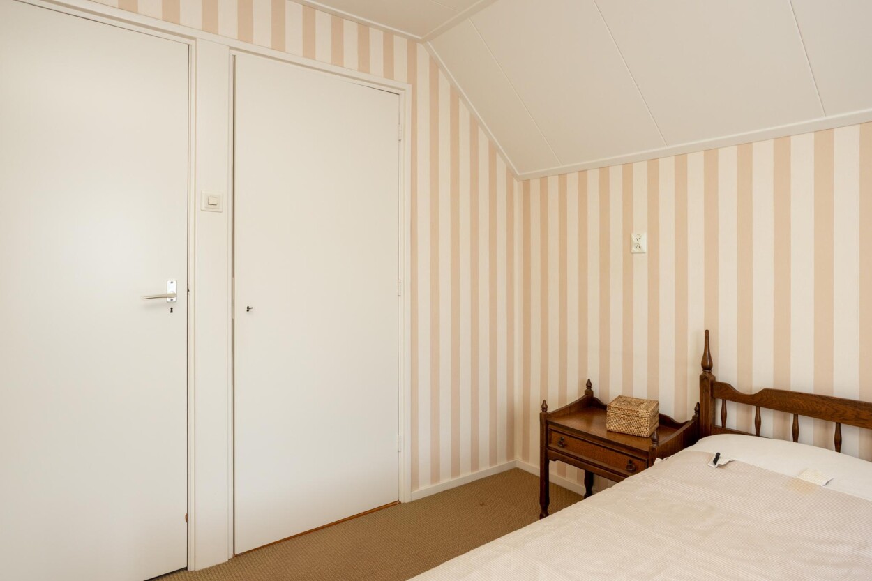 Vanaf de overloop is er toegang tot alle vertrekken op deze verdieping. Aan de voorzijde zijn twee slaapkamers te vinden, die beide beschikken over vaste kasten. De derde slaapkamer betreft een ruime ouderslaapkamer en is aan de achterzijde gelegen. Ook deze kamer beschikt over veel vaste kastruimte.