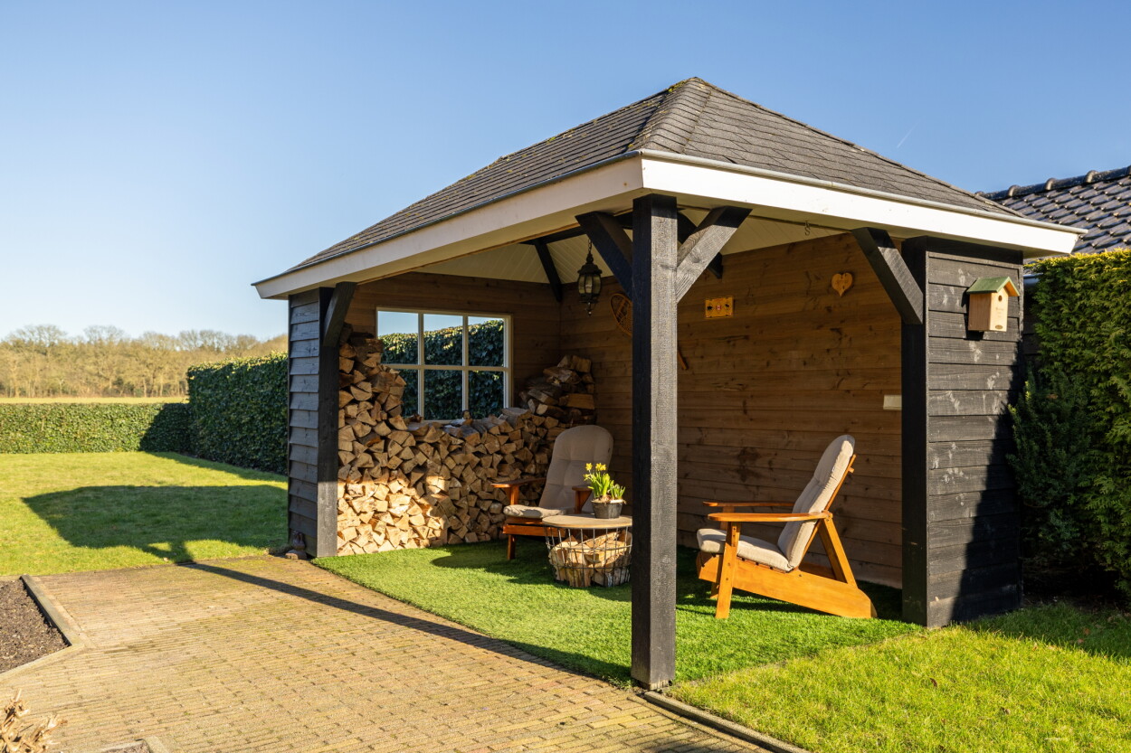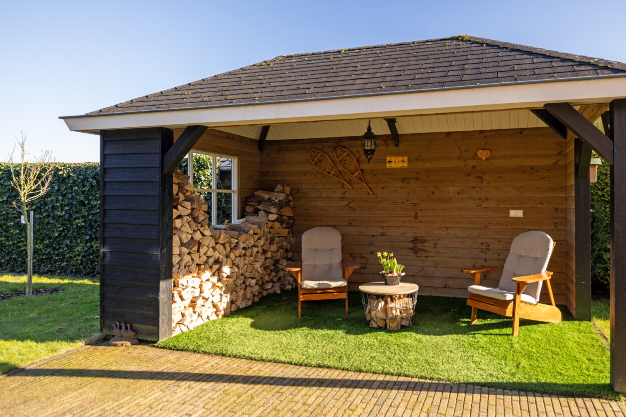 Naast de alle inpandige bergruimte die de woning heeft is er een vrijstaande schuur van circa 5,5 x 9 meter. Deze is uitgevoerd met een stenen borstwering en houten gevelbekleding en voorzien van zowel een garagedeur als een loopdeur. Ideaal voor hobby, opslag, kluswerk of bedrijfsactiviteiten aan huis.
