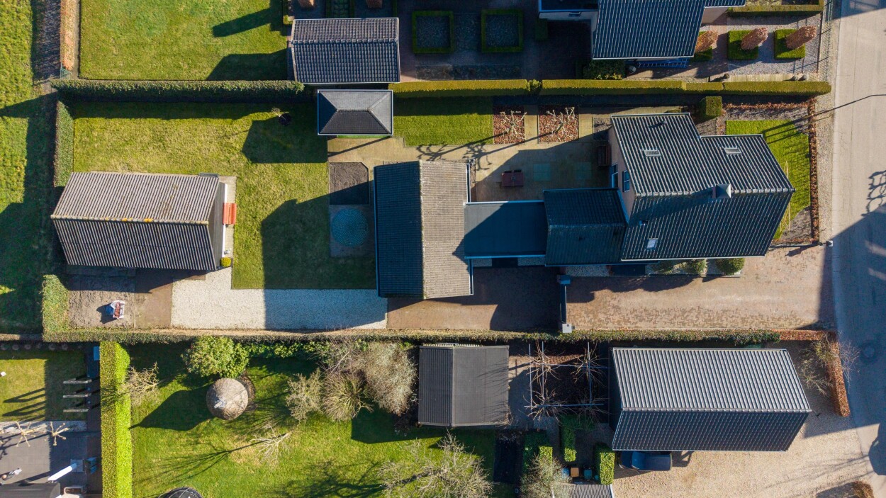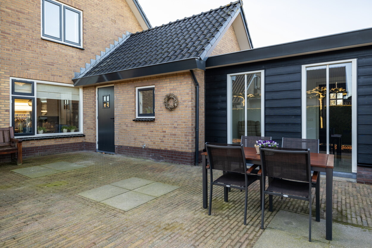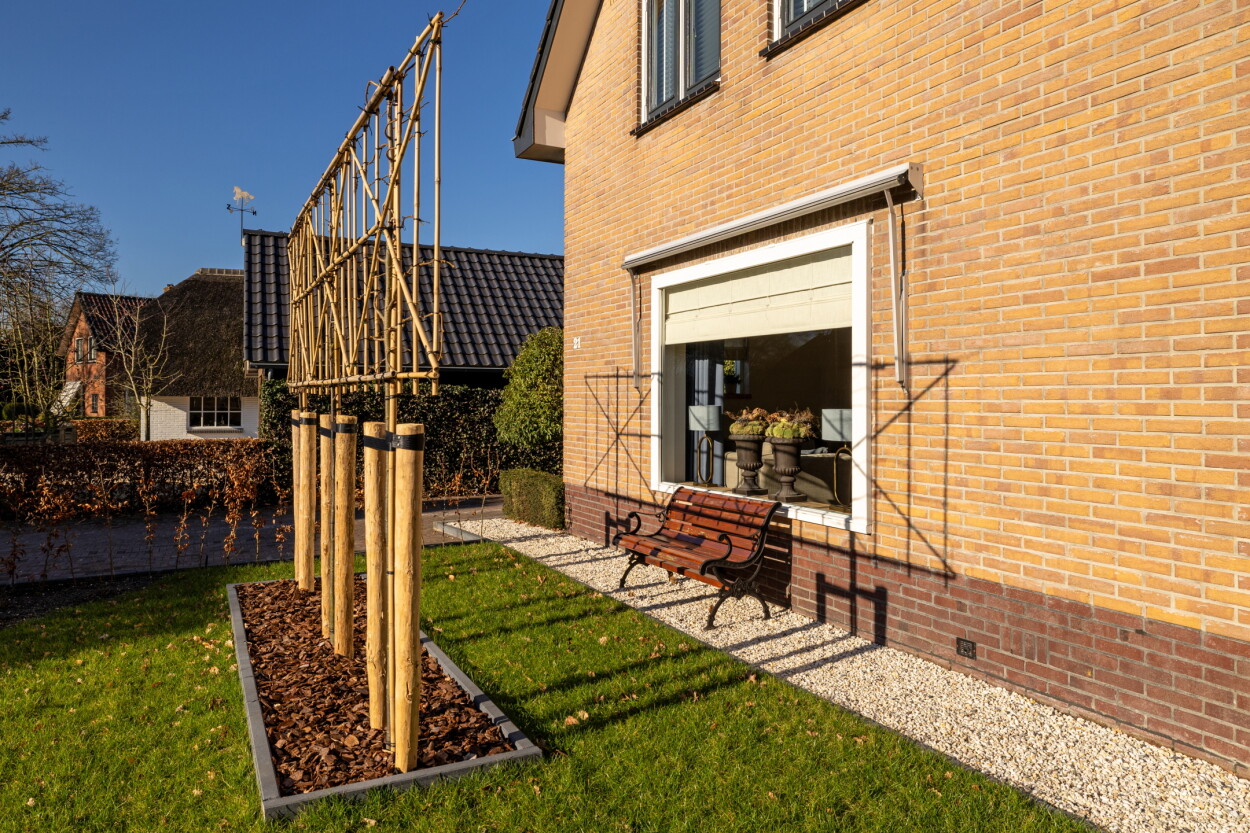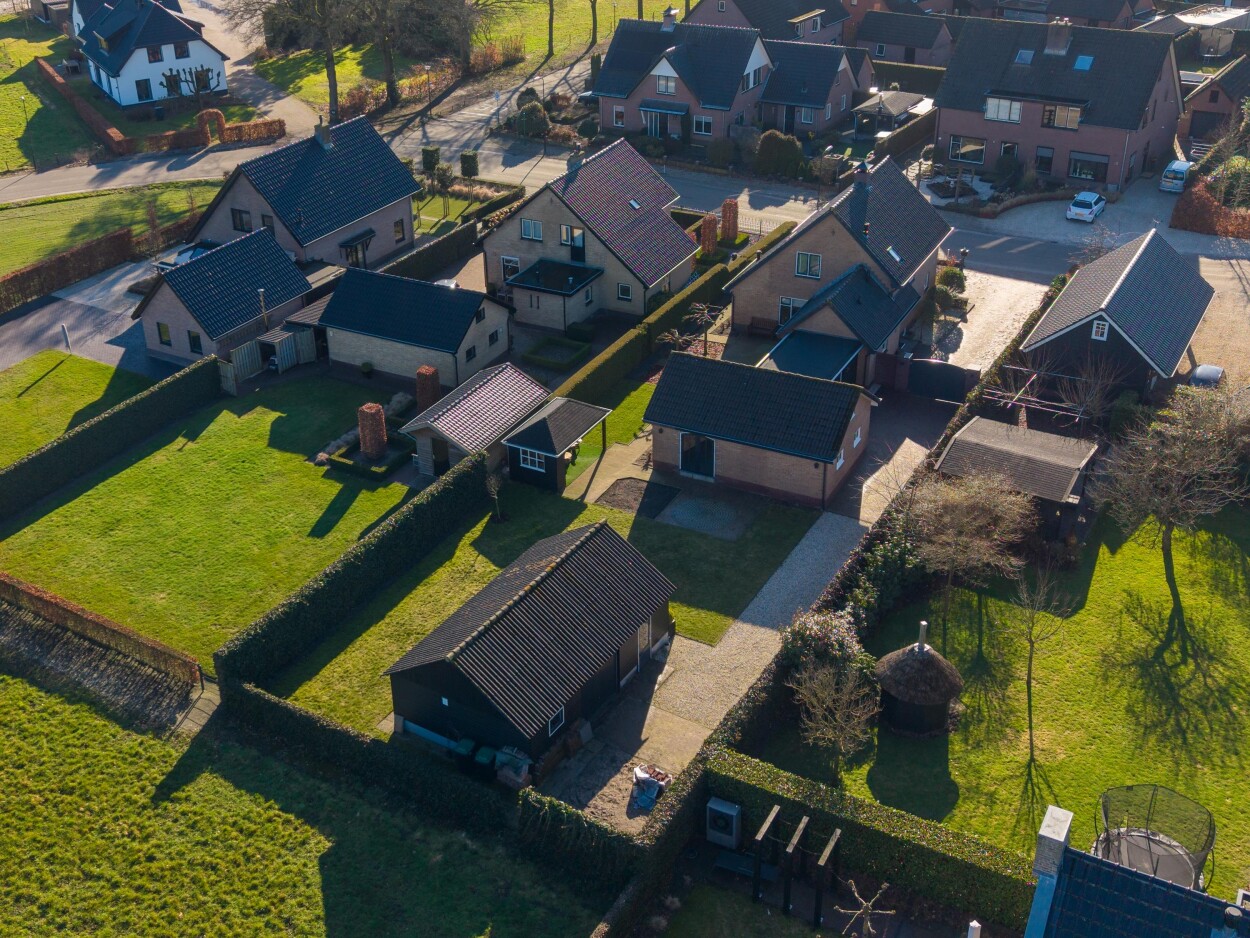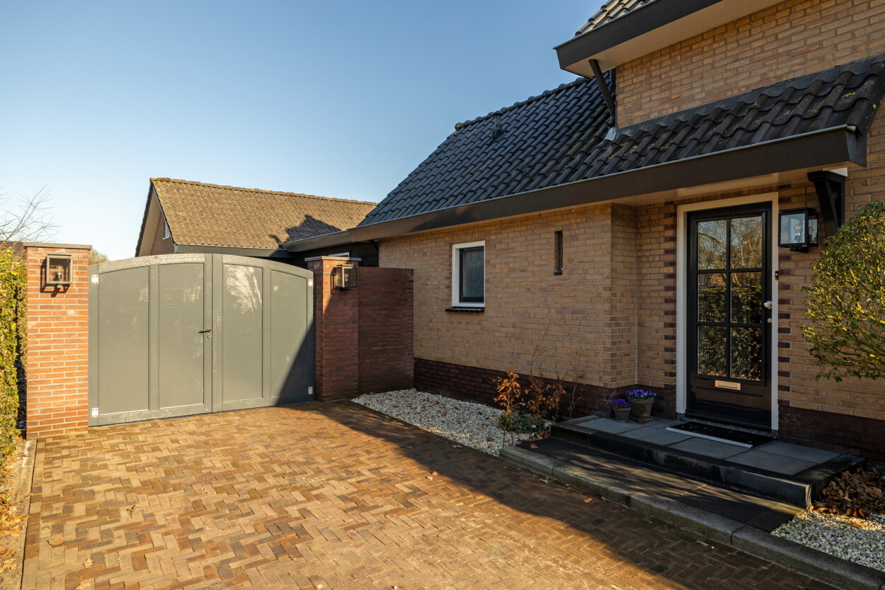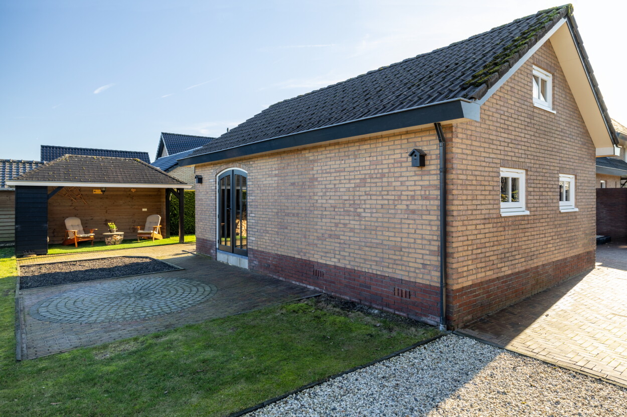 De woning staat op een royaal perceel van 894 m². De achterzijde biedt vrij uitzicht over de landerijen een buitengewoon fraaie en rustige plek. De tuin rondom de woning is keurig aangelegd en onderhouden. Aan de voorzijde bevindt zich een ruime oprit met plaats voor meerdere auto’s en een nieuwe poort met verlichting. In de achtertuin zijn diverse terrassen aangelegd, gecombineerd met sierbestrating, beplanting en een gazon.