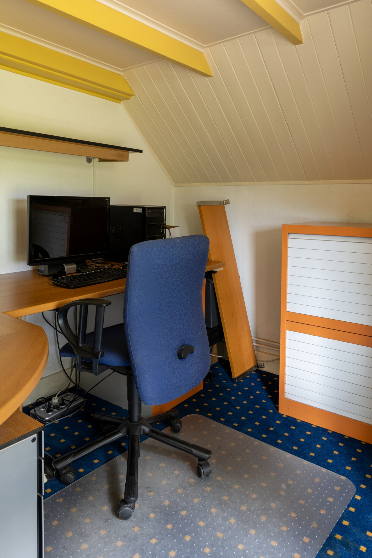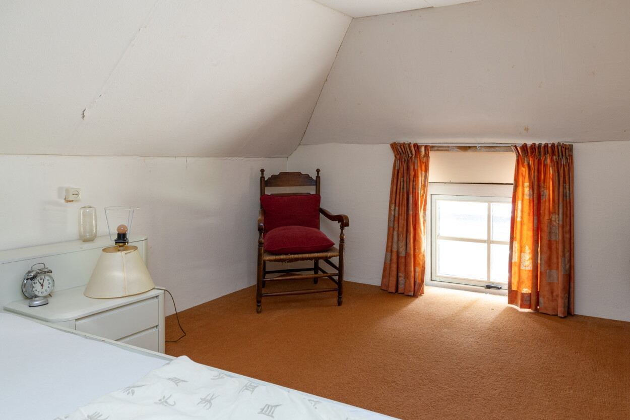 Vanuit de hal bij de voordeur is middels een vaste trap de bovenverdieping te bereiken. Hier treft u een overloop met toegang tot een slaapkamer en een kastenkamer. Ook is er nog een bergruimte aanwezig. Hier zijn eventueel mogelijkheden om nog meer woonruimte te creëren.