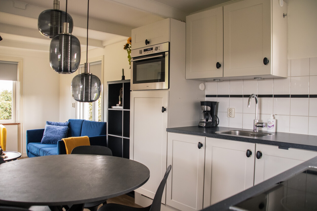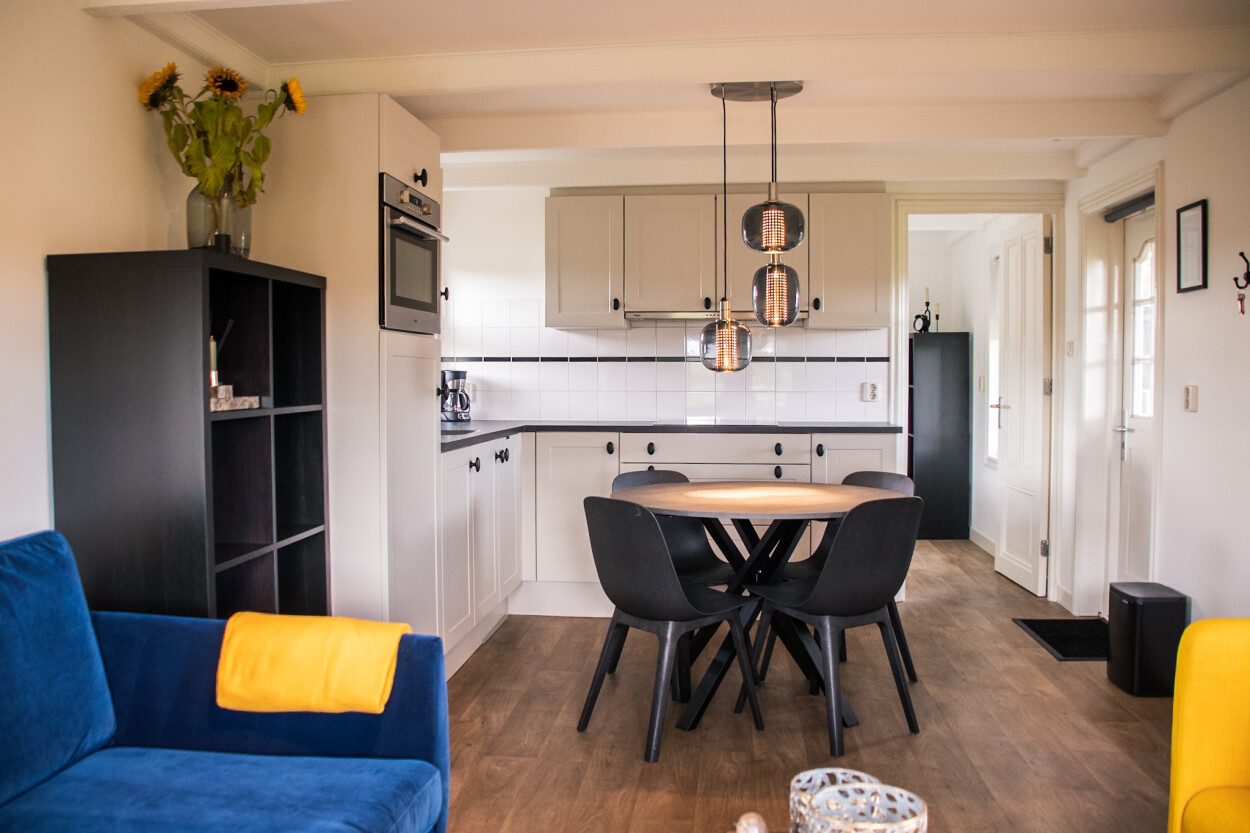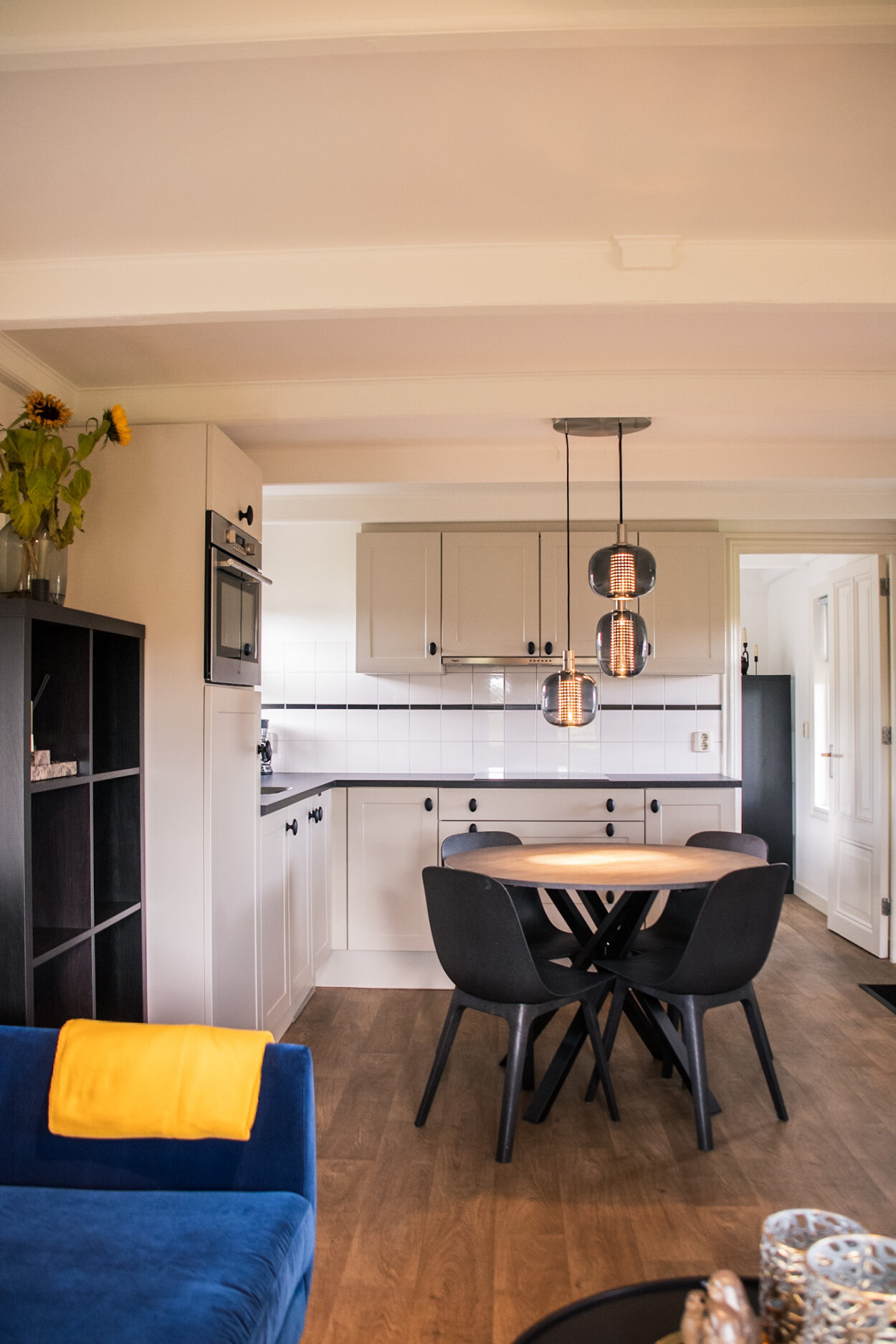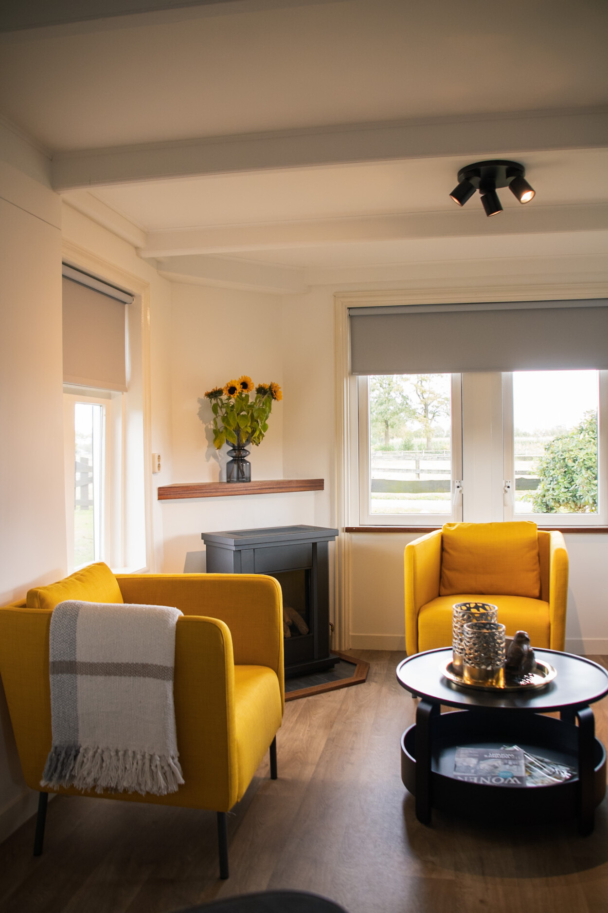 Via de entree komt u in de woonkamer met tevens de woonkamer. De woonkamer heeft aan 3 zijden ramen, waardoor u aan alle kanten over de weilanden uitkijkt. De woonkamer is voorzien van een gaskachel. De keuken is in 2016 opgeknapt en heeft een koelkast, oven, inductiekookplaat. Vanuit de keuken bereikt u de slaapkamer met een vaste kast en aangrenzend de nette en neutrale badkamer met daar het toilet, de inloopdouche en een vaste wastafel.