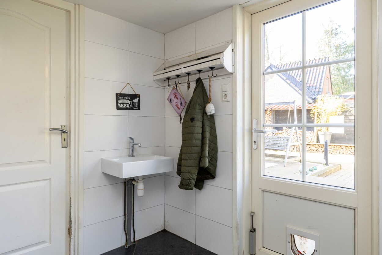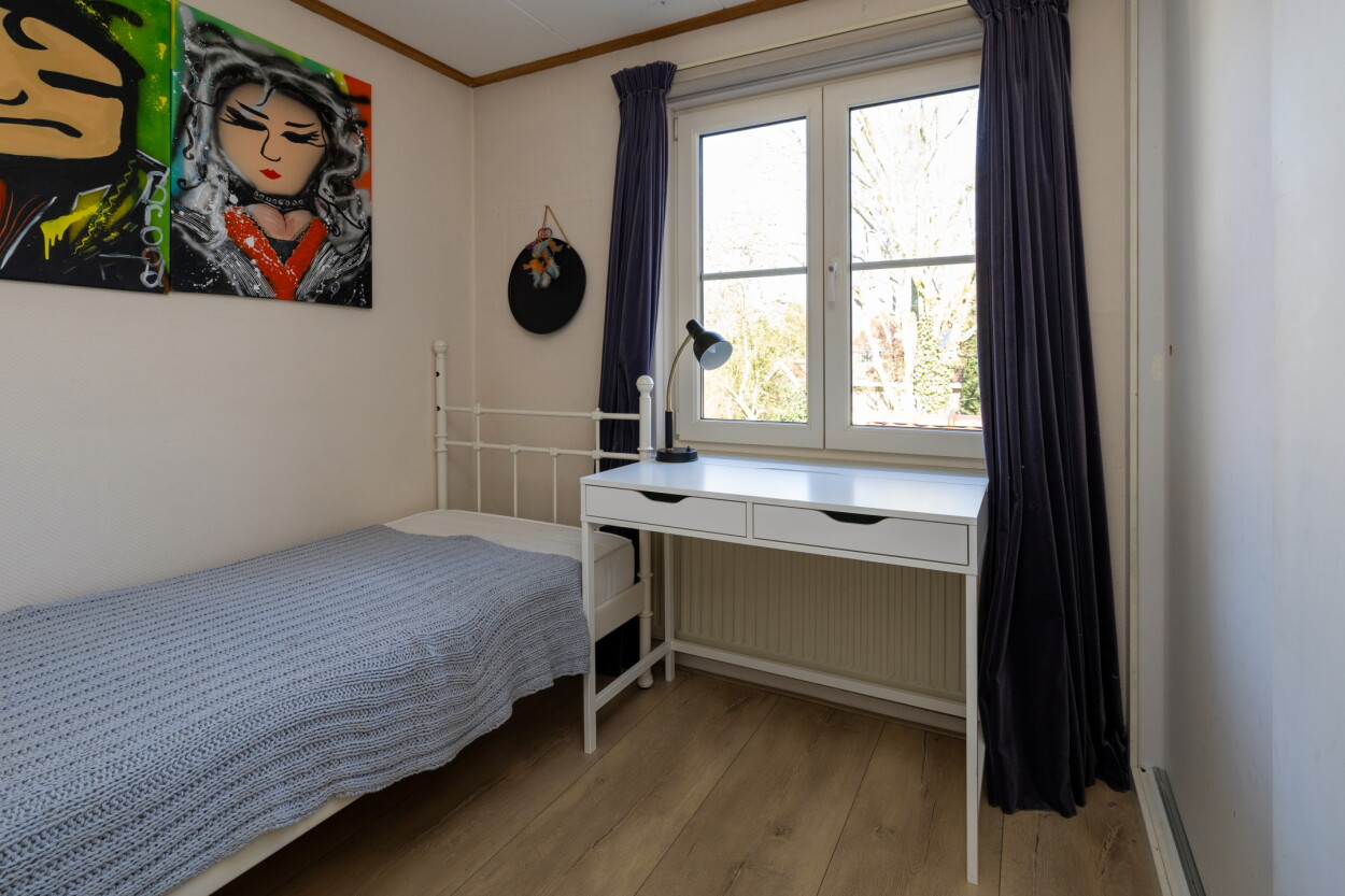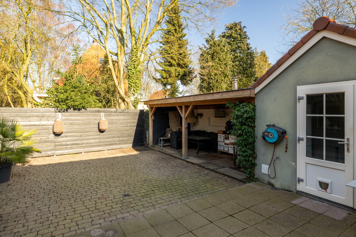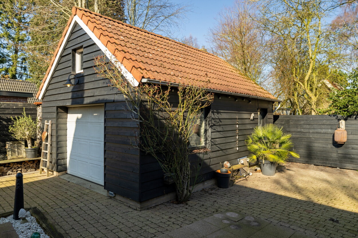 Achter op het perceel staat een zeer royale stenen garage van circa 4.5x6.5 m. Deze indrukwekkende ruimte is momenteel in gebruik als hobbyruimte en biedt talloze mogelijkheden voor opslag, werk of stalling. De houten veranda in de achtertuin is een prachtige toevoeging aan het geheel.