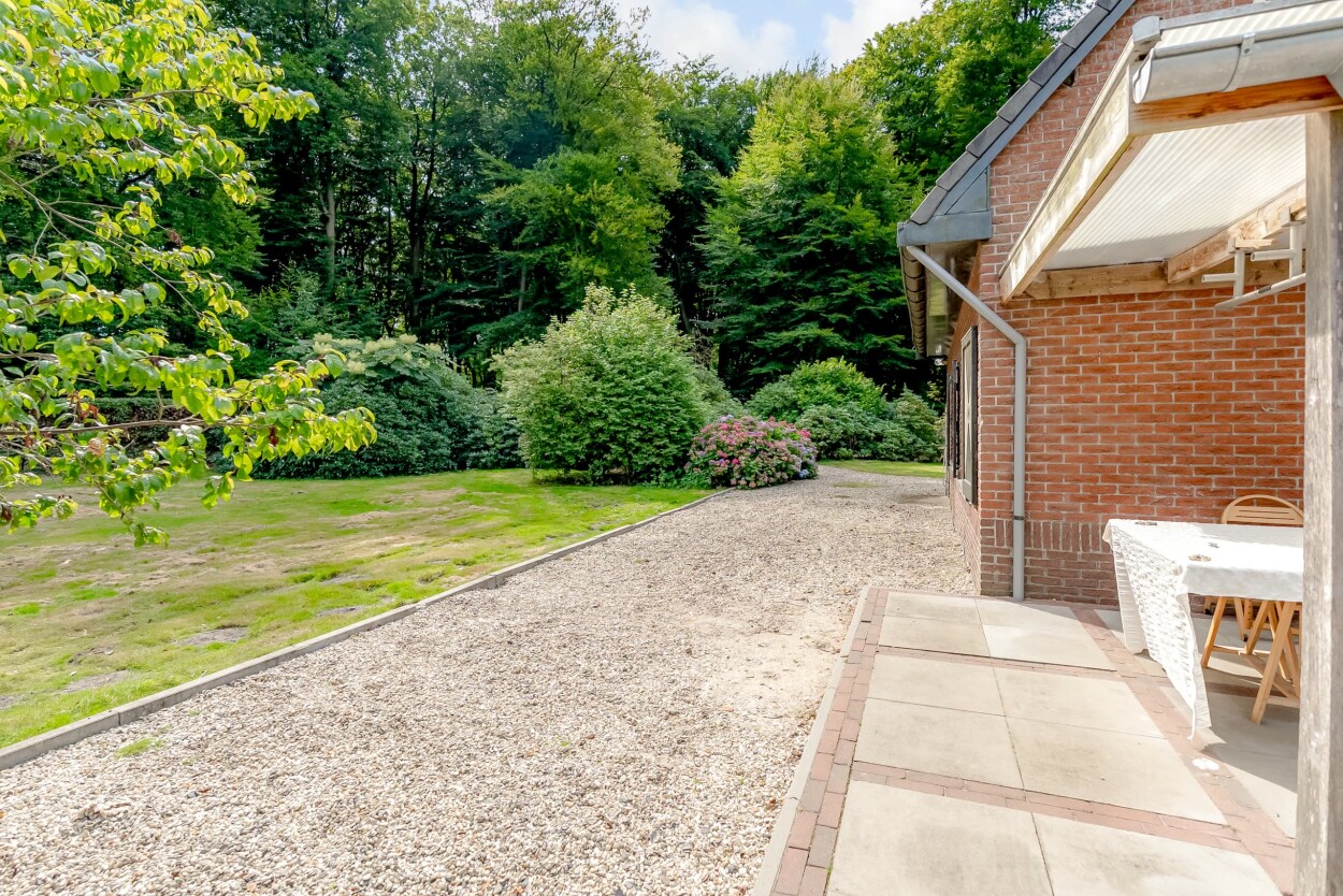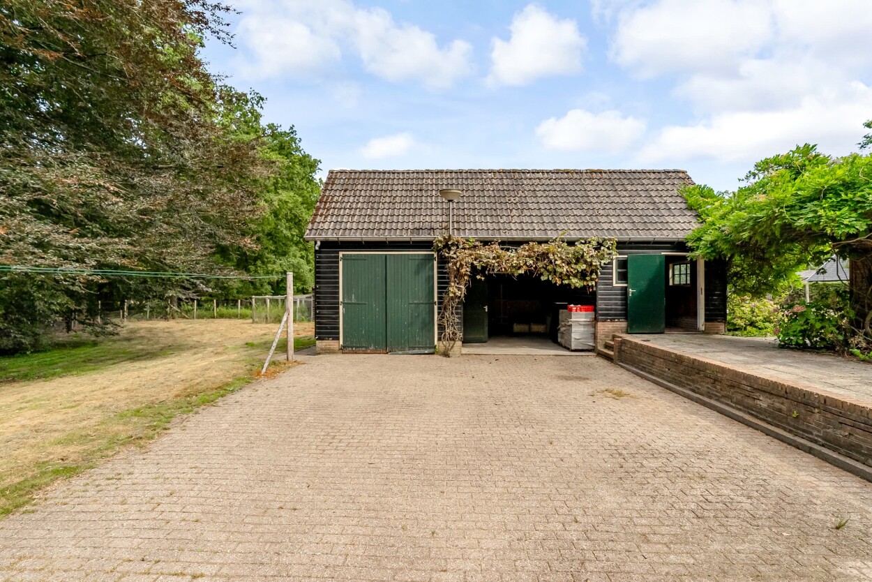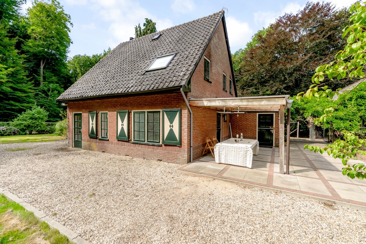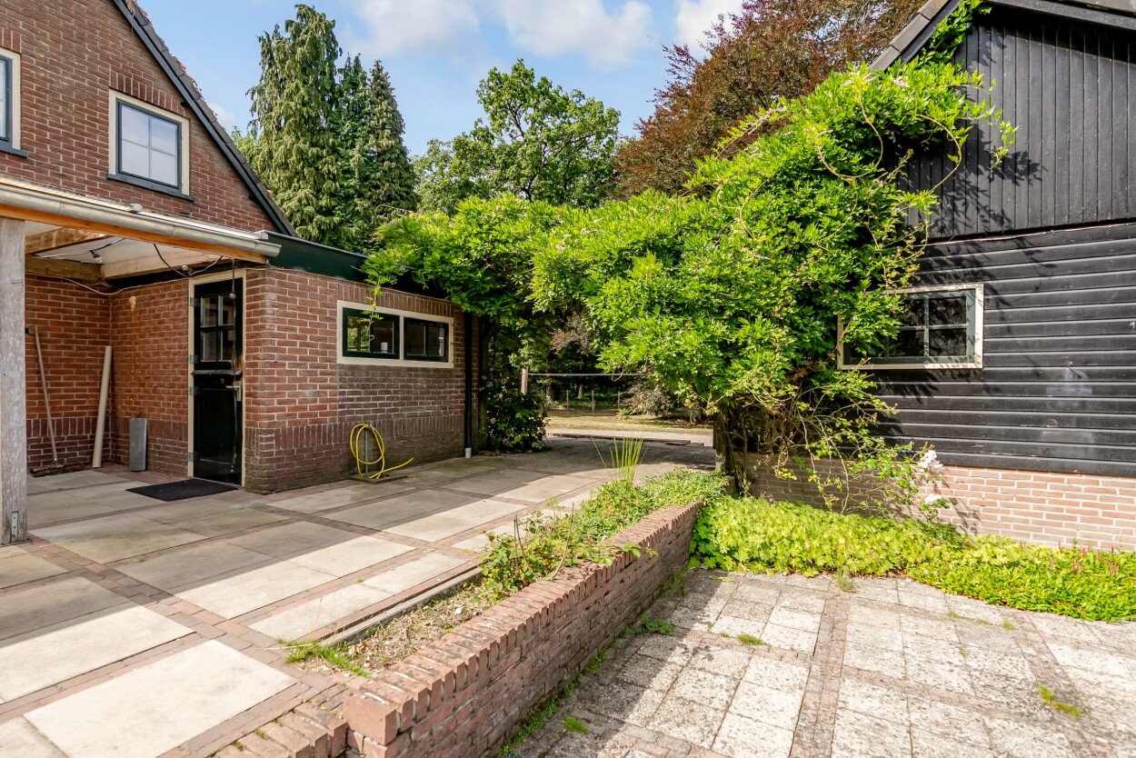 Rondom de woning ligt een ‘open’ tuin met veel ruimte voor terrassen, gazon en borders. Voor de woning is er een oprit en opzij van de woning een ruim bijgebouw.