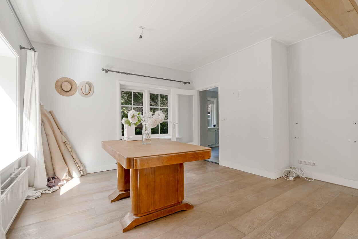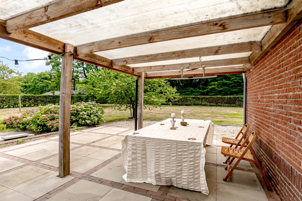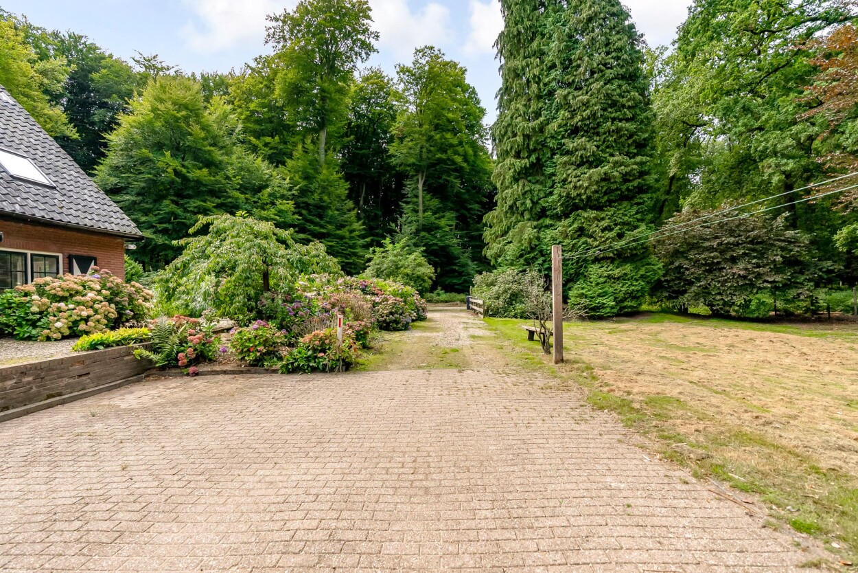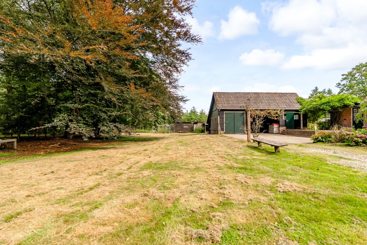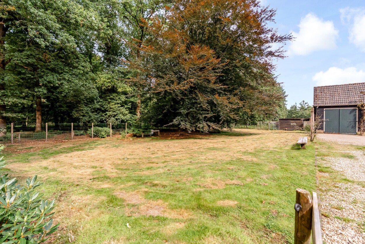 Rondom de woning ligt een ‘open’ tuin met veel ruimte voor terrassen, gazon en borders. Voor de woning is er een oprit en opzij van de woning een ruim bijgebouw.