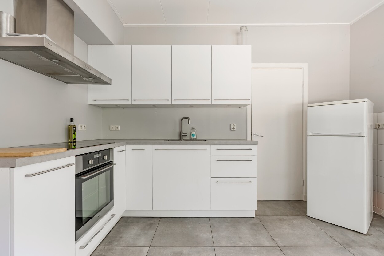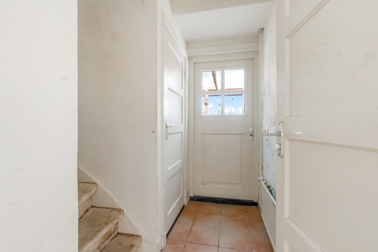 Entree, hal met toilet, trappartij naar de verdieping en toegang naar de woonkamer aan de voorzijde van de woning. De woonkamer is over de volle breedte van de woning en heeft openslaande deuren naar de tuin. Vanuit de woonkamer is de keuken te bereiken. Deze heeft een nette keukenopstelling met o.a. een inductie kookplaat en oven. Er is tevens toegang naar de kelder. Aan de achterzijde is er een bijkeuken aangebouwd, met een achterentree. De bijkeuken is vanuit de keuken bereikbaar en is voorzien van aansluitingen voor wasapparatuur en opstelling van de cv-ketel. Tenslotte is er vanuit de gang nog toegang naar de badkamer die in een voormalige slaapkamer is gesitueerd. De ruime badkamer beschikt over een inloopdouche, ligbad, toilet en een wastafel.