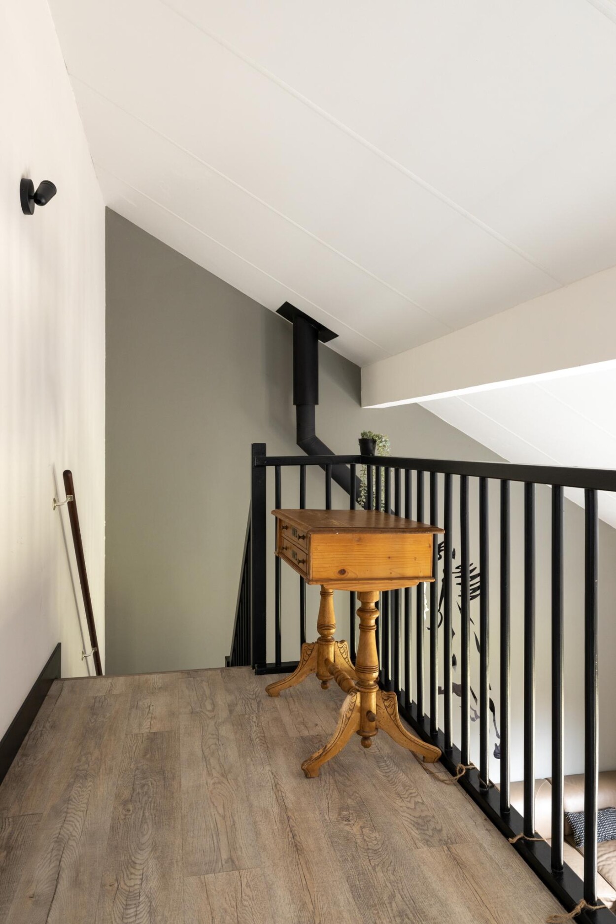 Overloop met toegang naar twee slaapkamers. Allereerst is er de ruime ouderslaapkamer. De tweede slaapkamer is momenteel een logeerkamer en kleedruimte, met tevens toegang naar het toilet en de cv-ruimte.