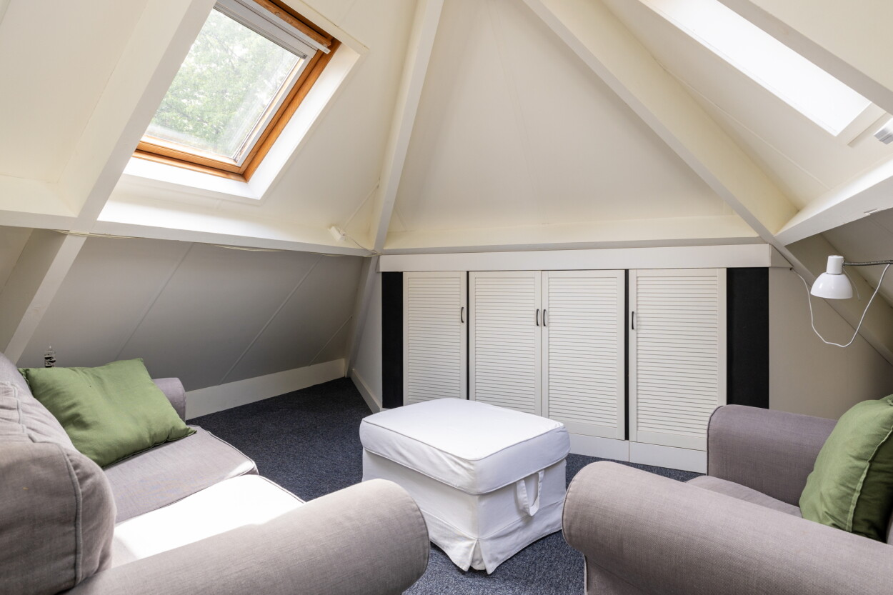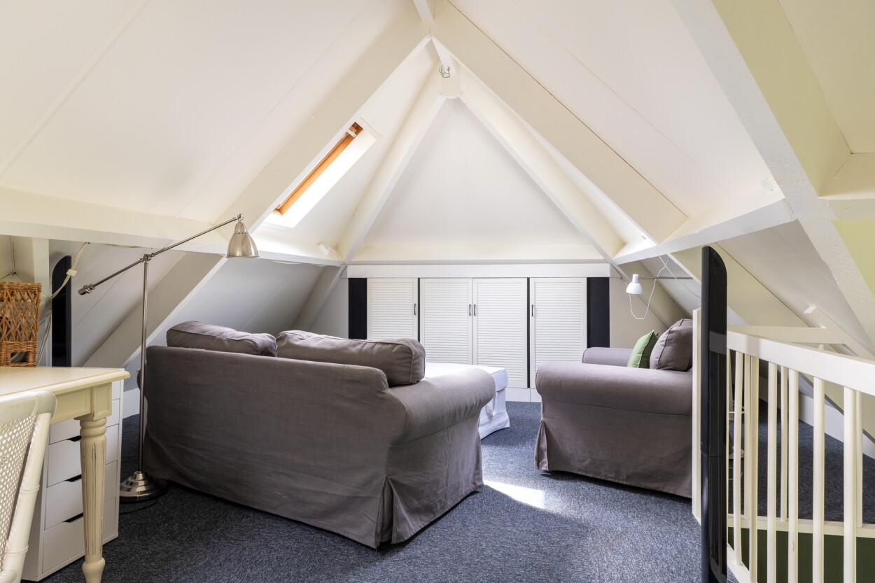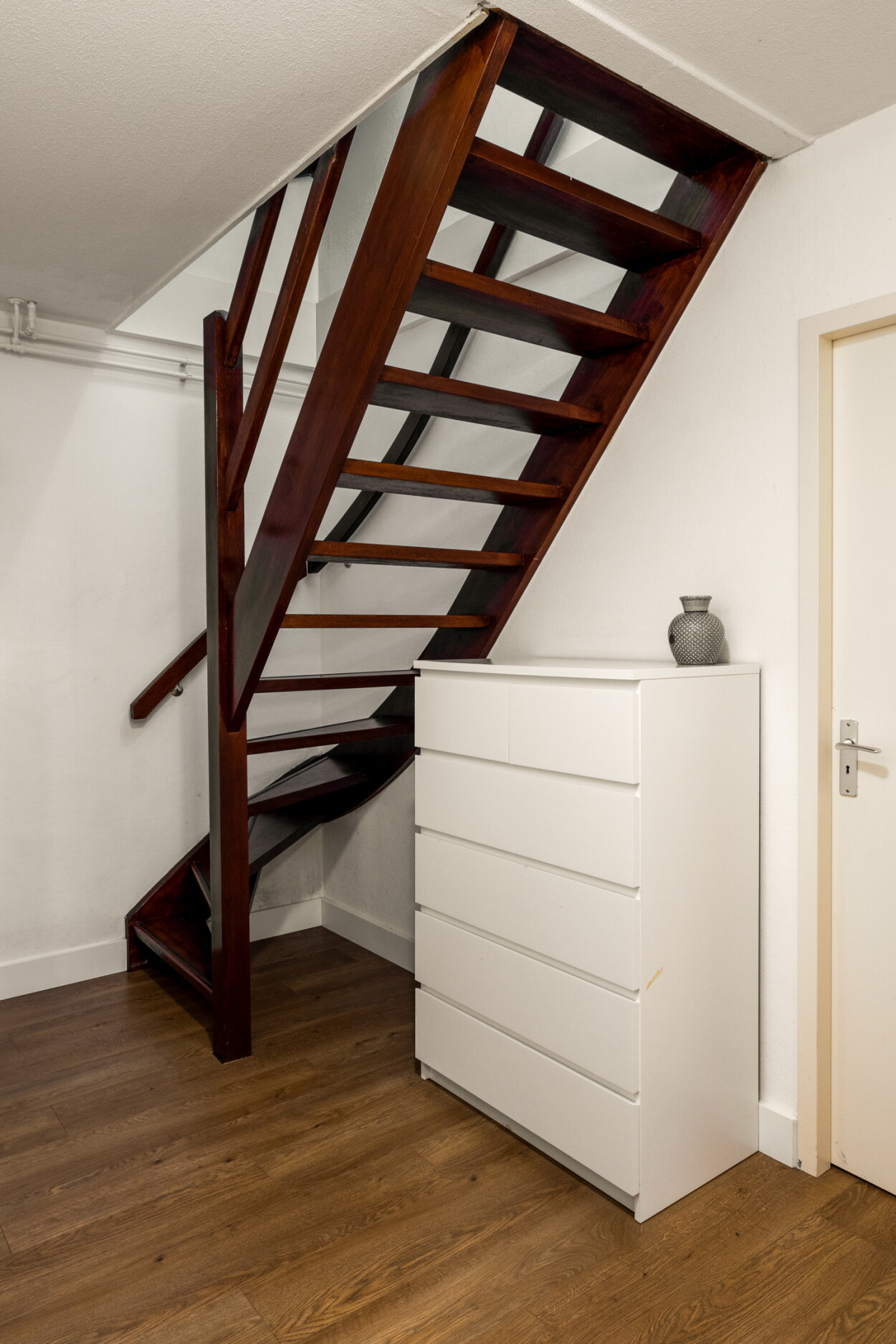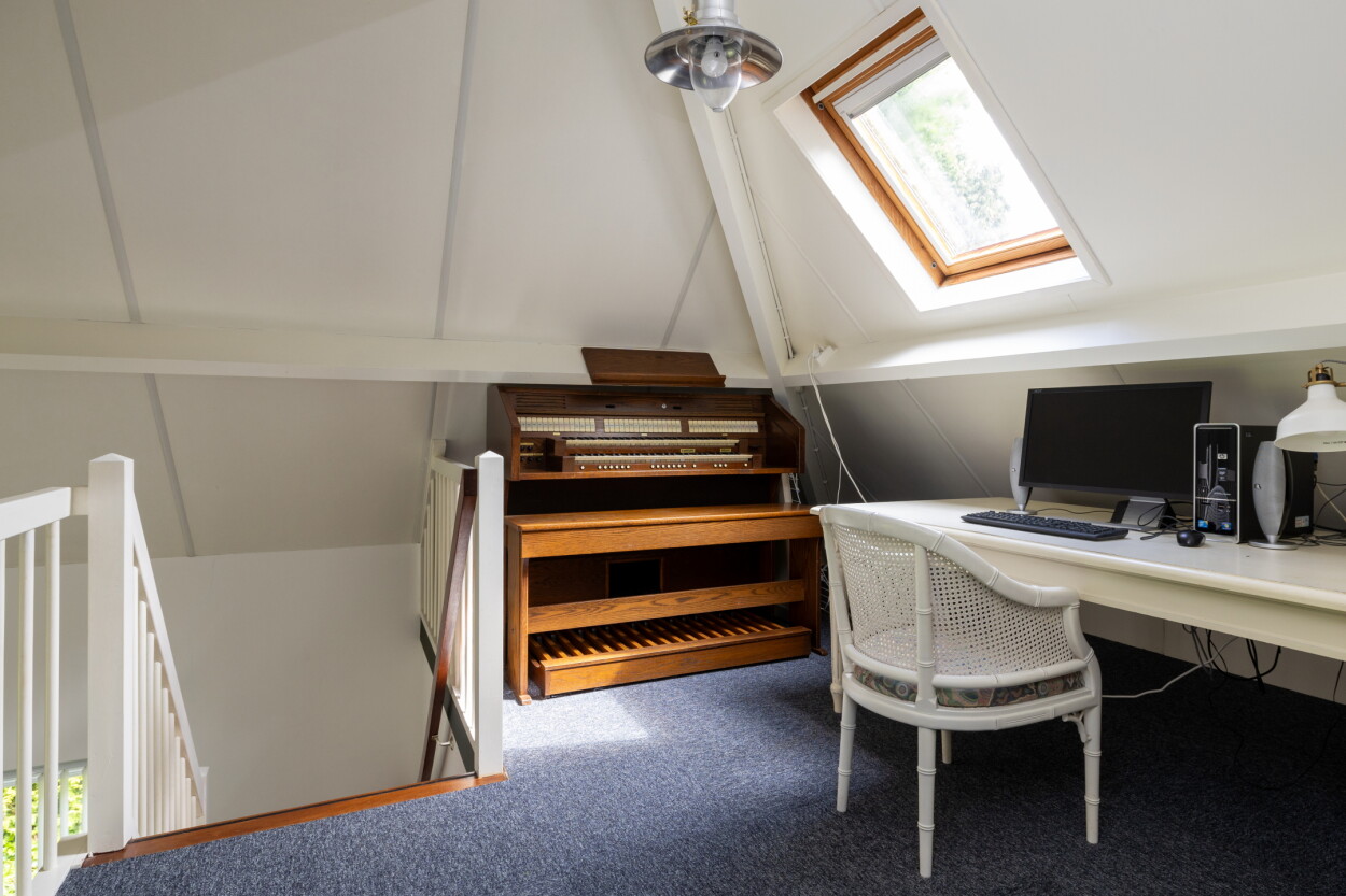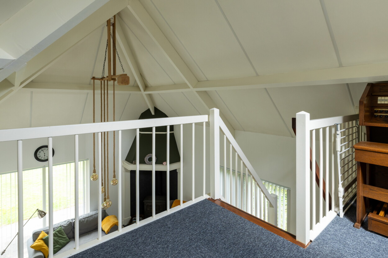 Vanuit de woonkamer is er een vast trap naar de verdieping. Deze open verdieping is thans in gebruik als hobbyruimte, maar kan ook als een slaapkamer gebruikt worden.