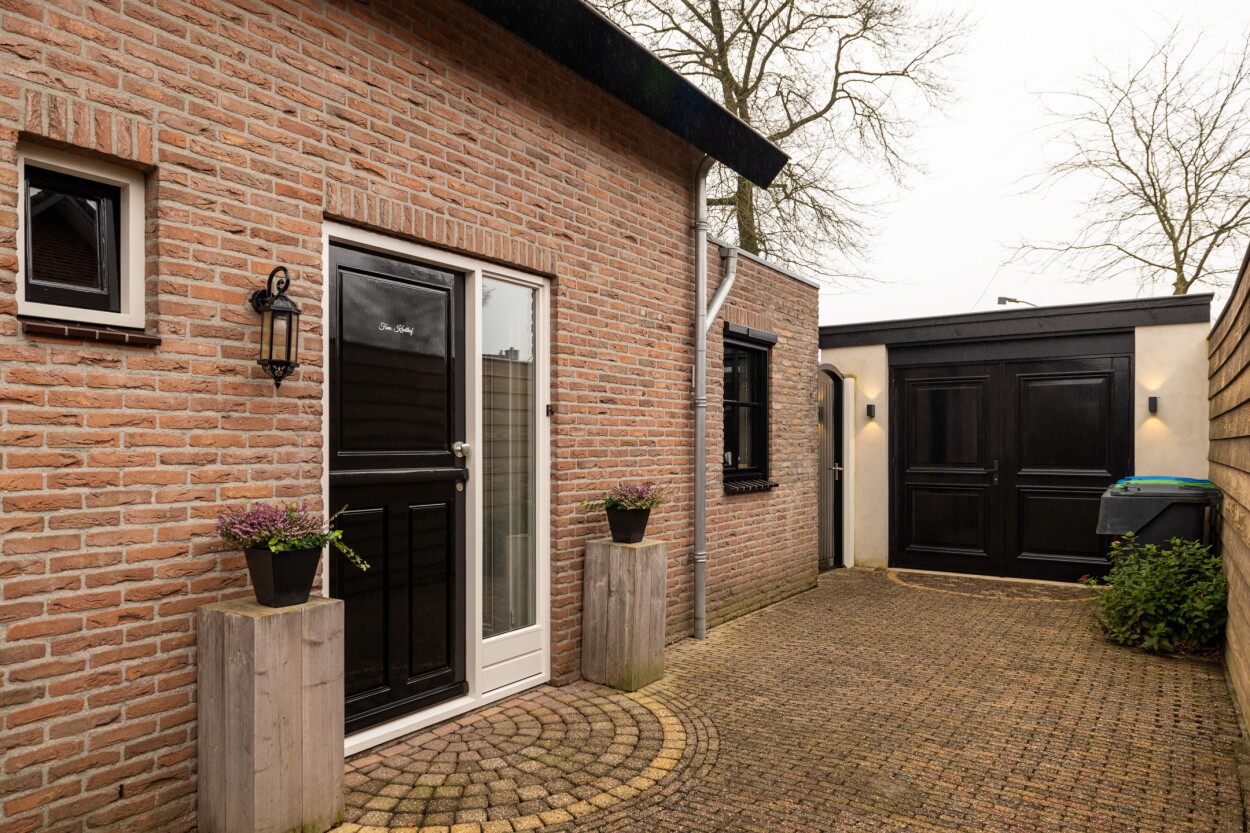 De stenen garage (ca. 3,4 x 7,3 meter) is een fijne ruimte voor het hobbyen en klussen. Hier bevindt zich ook een extra witgoedaansluiting en er zijn nieuwe openslaande garagedeuren geplaatst. Voor de garage ligt een ruime oprit met plaats voor meerdere auto's.