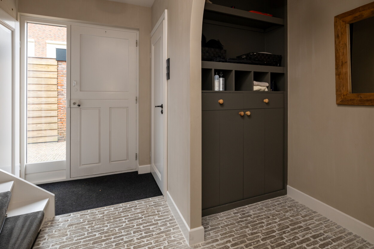 U komt binnen in de hal met een fraaie vloer van unieke 'bricks'. Hier bevindt zich de trapopgang, het toilet, de meterkast en een ruime garderobenis. De woonkamer is aan de voorzijde gesitueerd en biedt een leuk zicht in de straat. De afwerking is super strak met een prachtige parketvloer en een sfeervolle houtkachel. In de woonkamer bevindt zich tevens een fraaie maatwerk kastenwand die zorgt voor veel praktische opbergruimte en een hele stijlvolle uitstraling. Aan de achterzijde loopt de vloer over in fraaie zandkleur kloostertegels. De in 2023 vernieuwde keuken is uitgevoerd in een hoekopstelling en voorzien van alle benodigde inbouwapparatuur, waaronder een vaatwasmachine op hoogte, Quooker kraan, koelkast, vriezer, afzuigkap, inductiekookplaat en oven. Er is een keukenraam geplaatst waardoor u vanuit de keuken ook een leuk zicht op de achtertuin heeft.