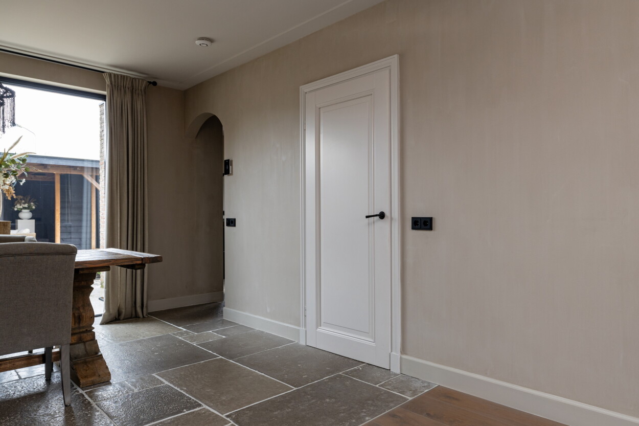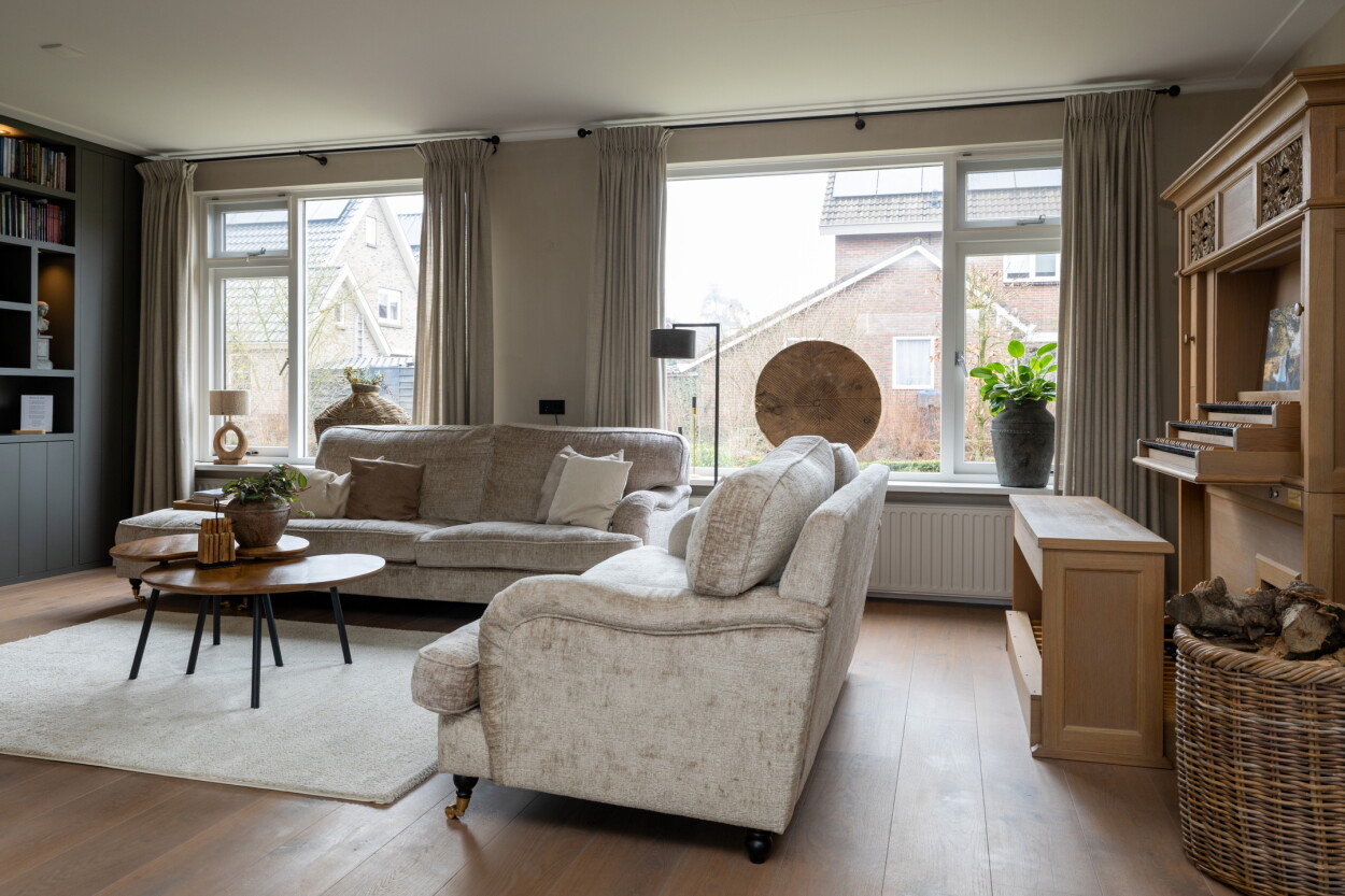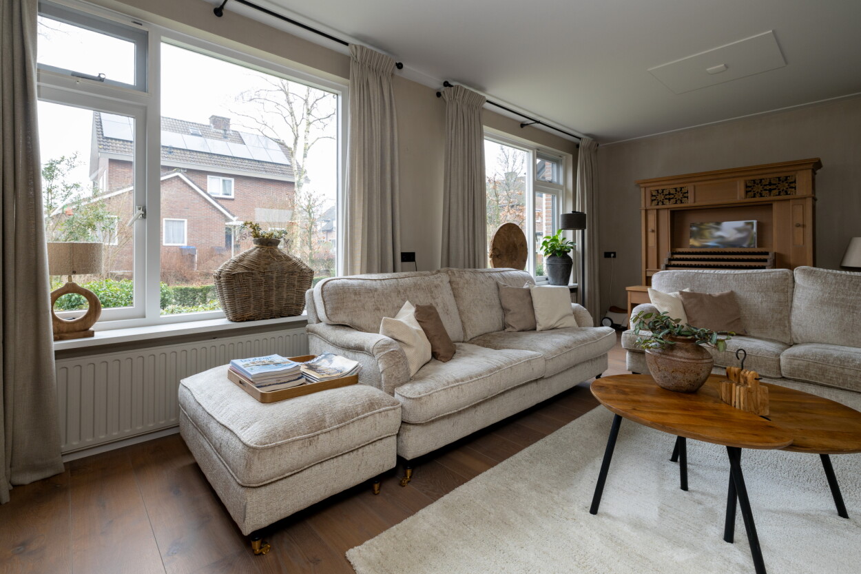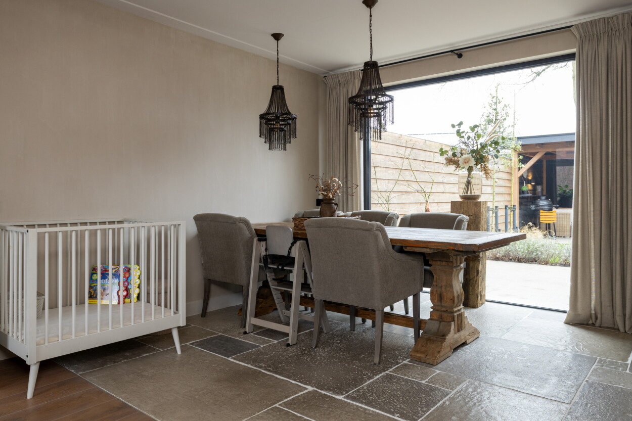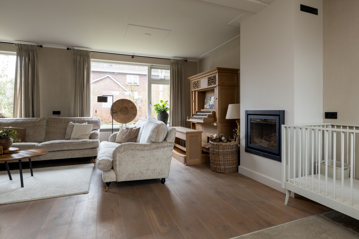Deze woning is volledig instapklaar en biedt een zee aan ruimte. Maar liefst vijf slaapkamers maken dit tot een ideale gezinswoning. Wat direct opvalt bij binnenkomst is de unieke vloerafwerking; een combinatie van prachtige 'bricks' in de hal, overlopend naar een sfeervolle parketvloer en robuuste kloostertegels in het woongedeelte. In 2023 is bij het eetgedeelte een groot raam van vloer tot plafond geplaatst wat het buitenleven naar binnenhaalt. De houtkachel in de woonkamer zorgt voor extra sfeer en warmte tijdens de koudere dagen.