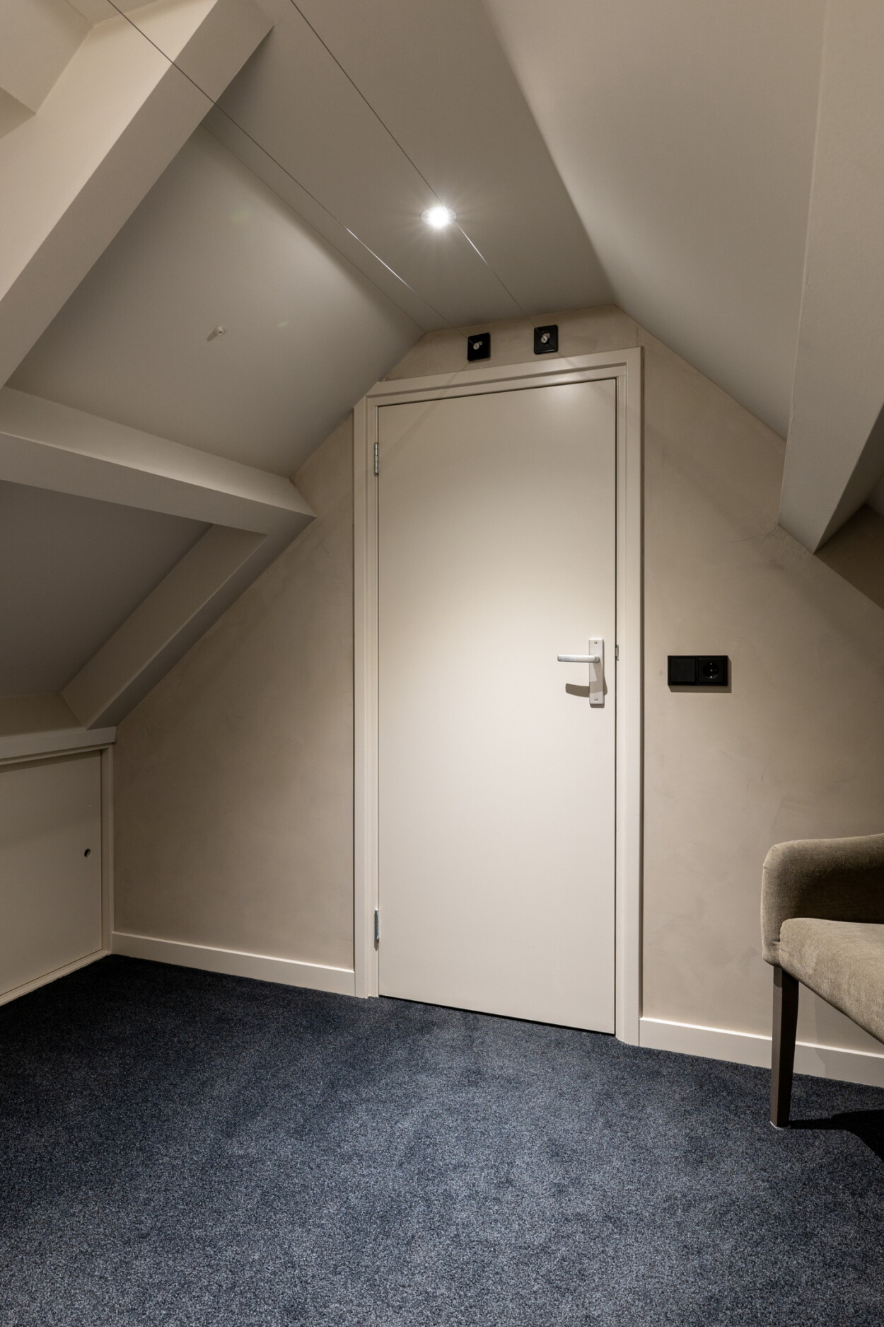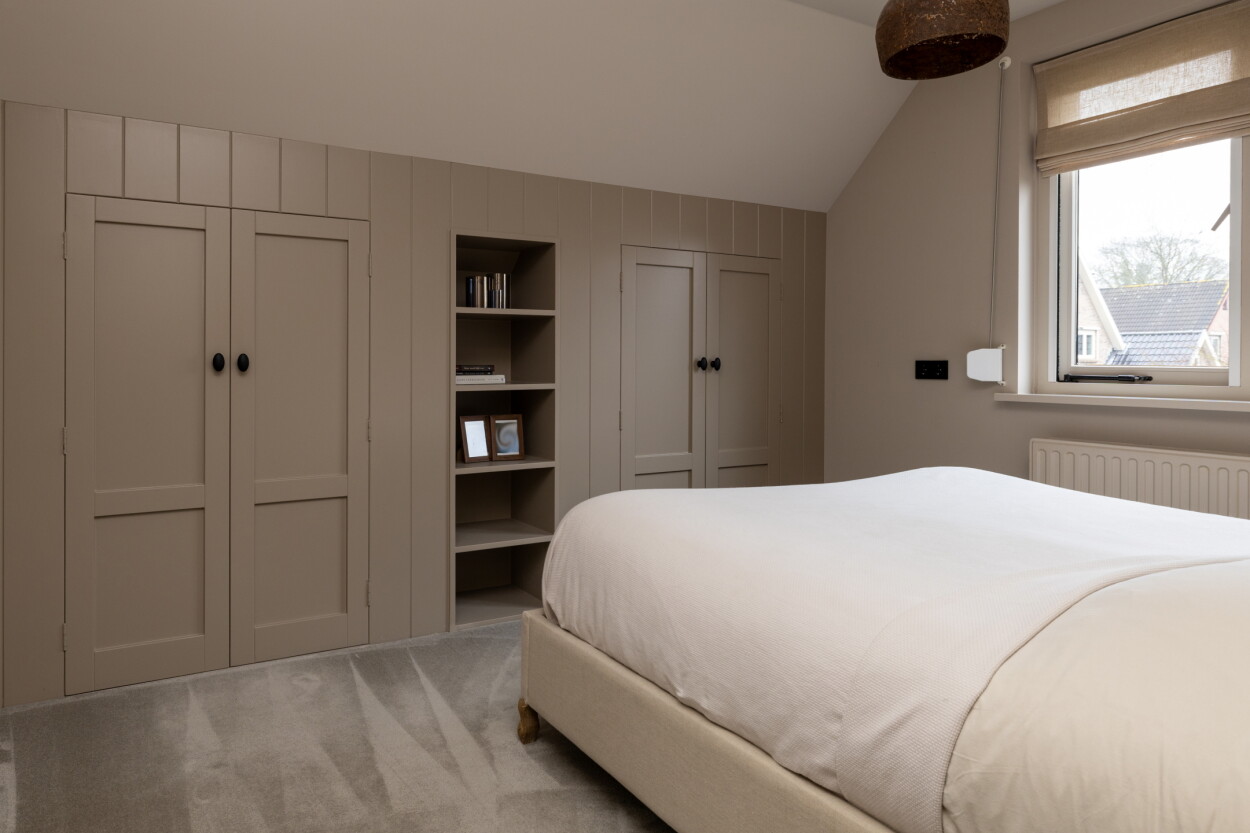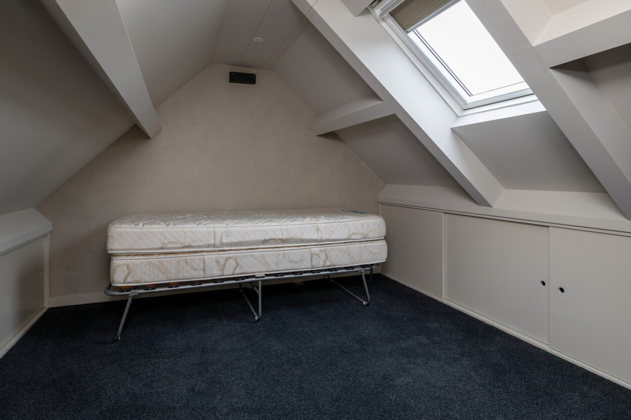 Tweede verdieping: Via een vaste trap bereikt u de zolderverdieping. De overloop heeft een vaste kast en toegang tot de 4e en 5e slaapkamer, beide voorzien van een dakvenster. Hier bevinden zich eveneens de witgoedaansluitingen en achter de knieschotten is volop bergruimte aanwezig.