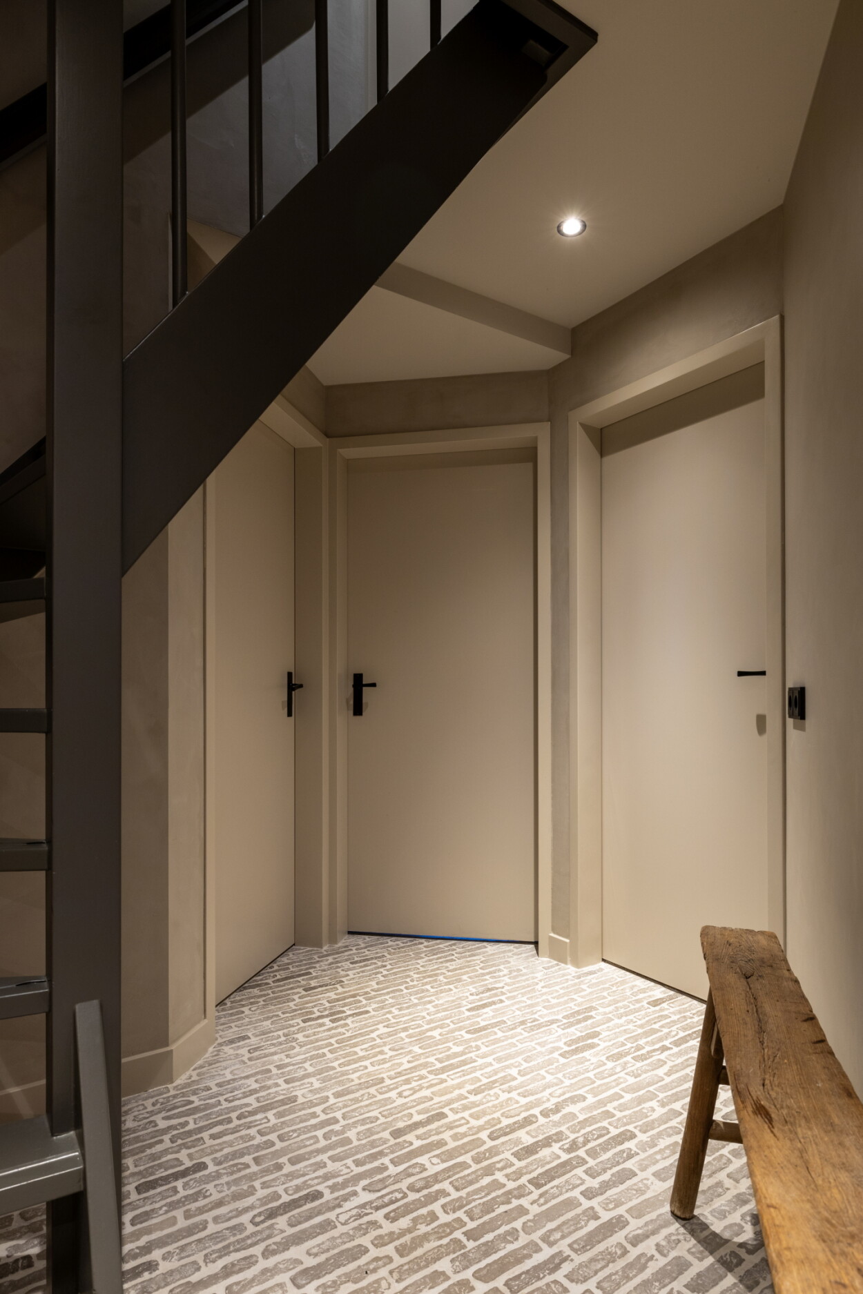 Eerste verdieping: Vanaf de overloop, eveneens voorzien van de bijzondere 'bricks' vloer, heeft u toegang tot drie ruime slaapkamers. De hoofdslaapkamer en de tweede slaapkamer zijn gelegen aan de voorzijde, waarbij de hoofdslaapkamer beschikt over praktische vaste kasten. De derde slaapkamer bevindt zich aan de achterzijde en strekt zich uit over vrijwel de gehele breedte van de woning, wat zorgt voor veel ruimte en daglicht. Vanuit deze kamer is er toegang tot de technische ruimte met cv-opstelling. De moderne badkamer is compleet uitgerust met een wastafel, douche, toilet en comfortabele vloerverwarming.