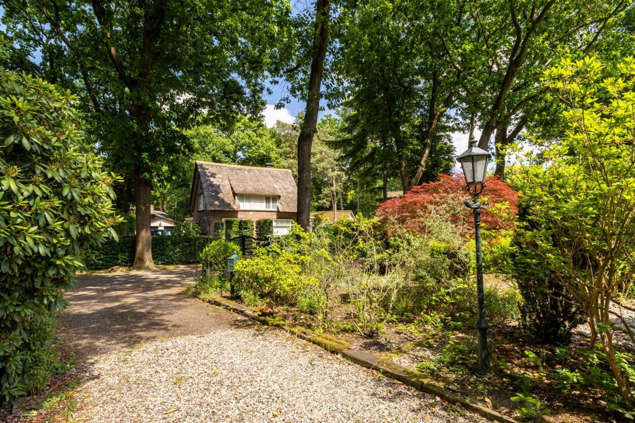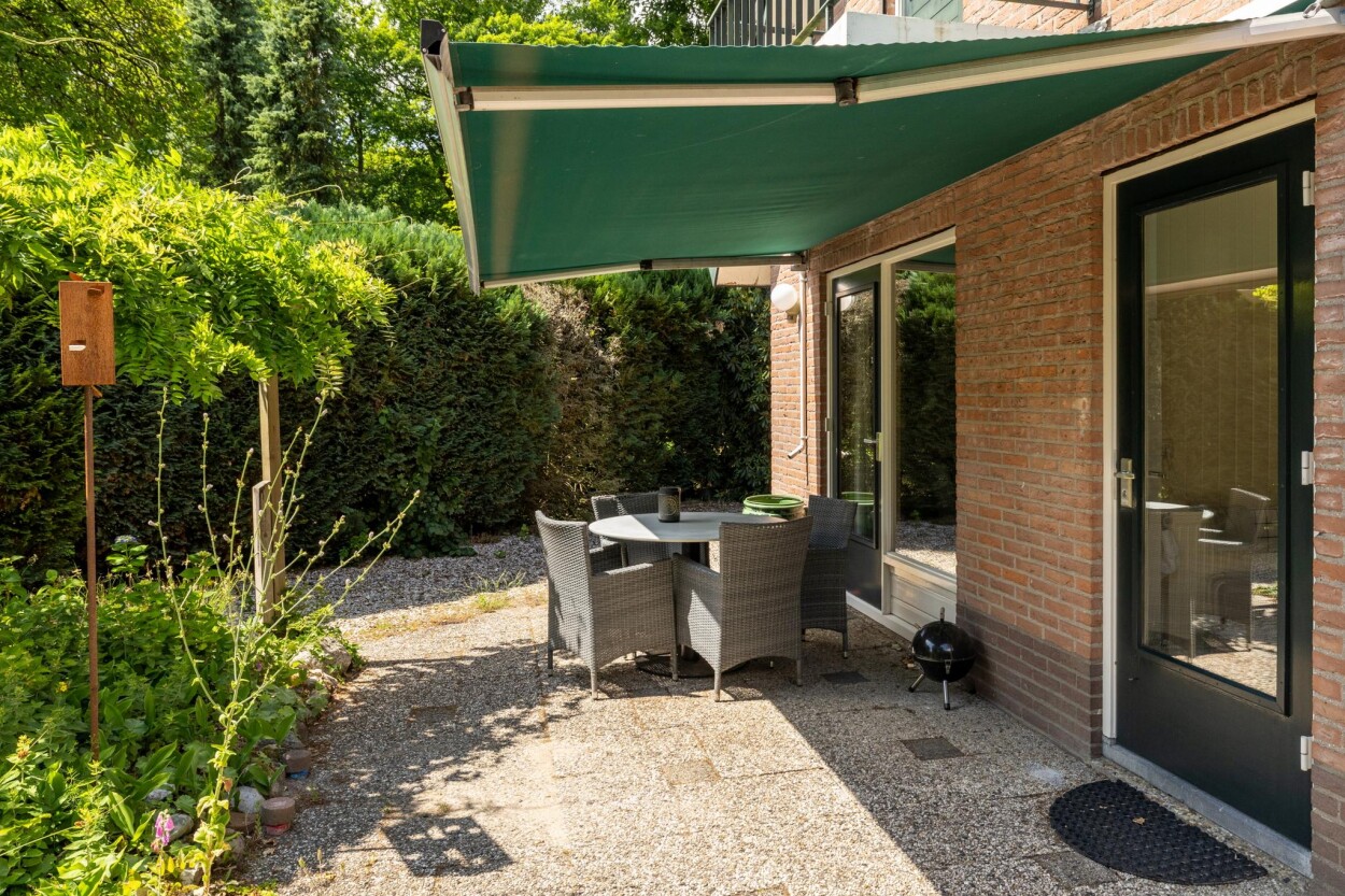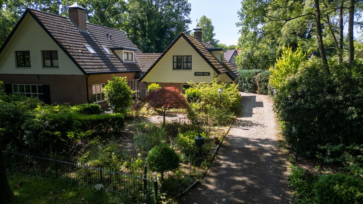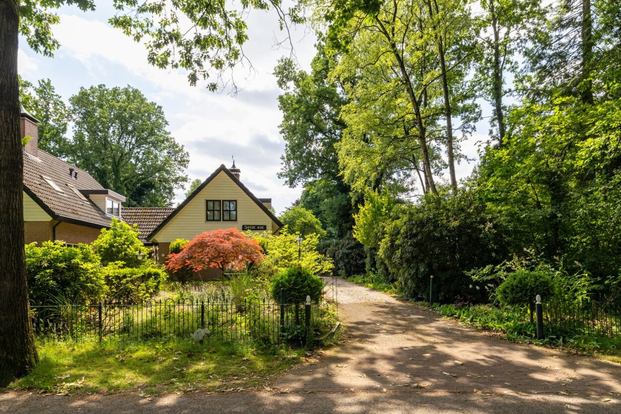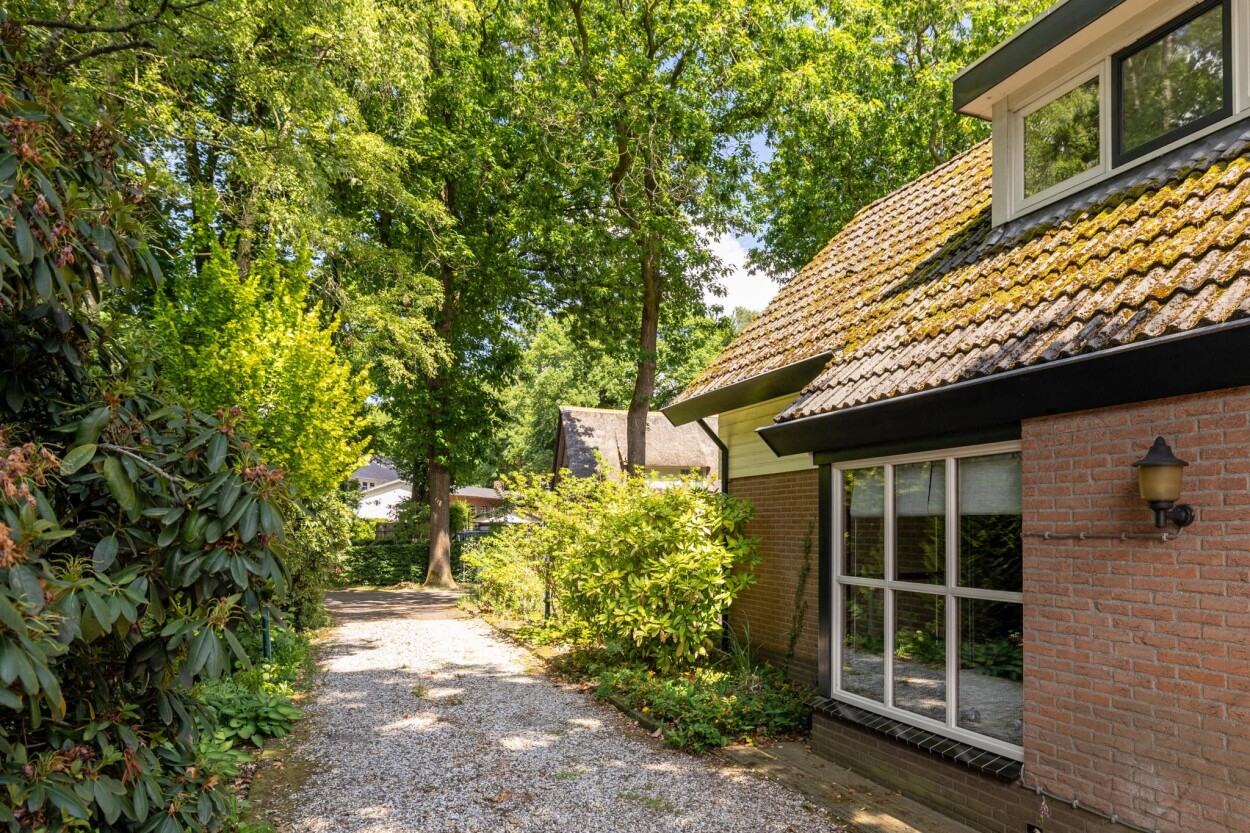 Voor de woning ligt een diepe bostuin met een oprit voor meerdere auto’s. Achter de woning ligt een besloten achtertuin met terras met veel privacy en kleine vijverpartij.