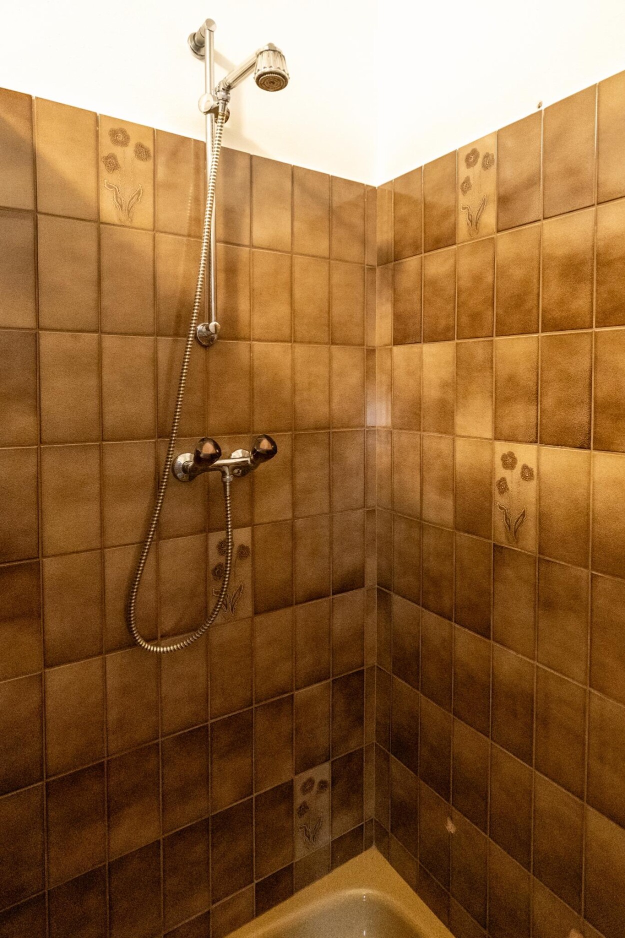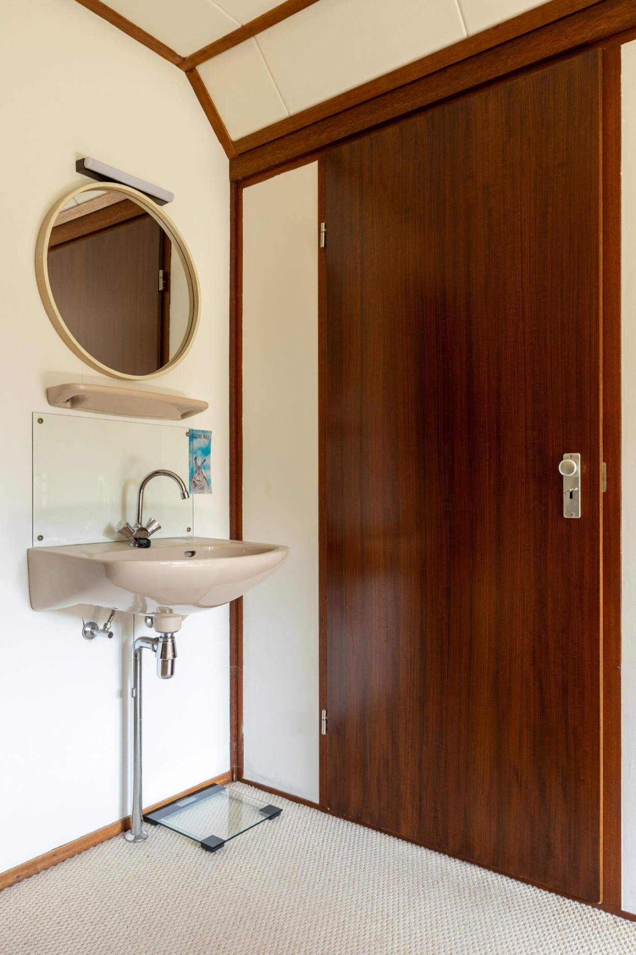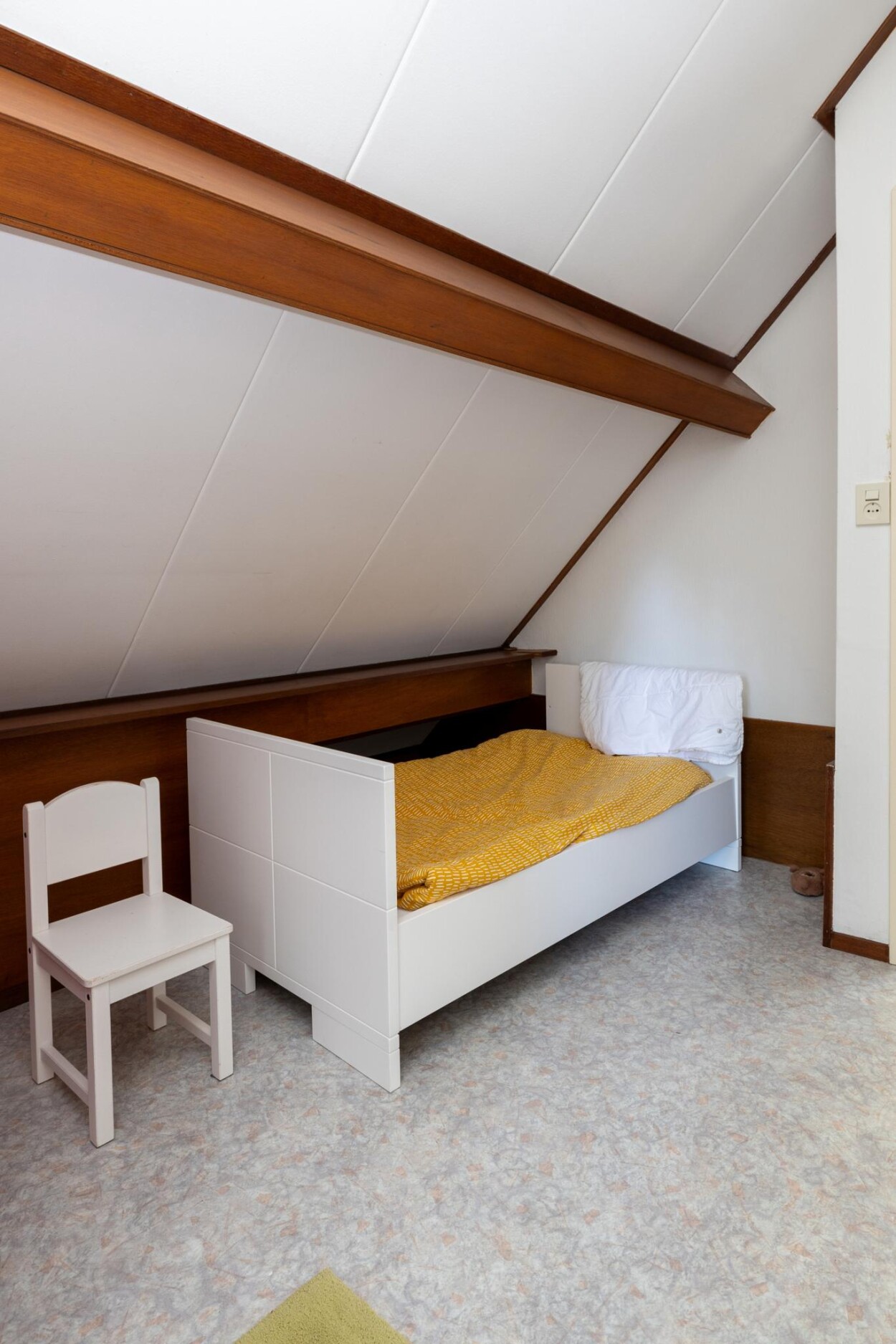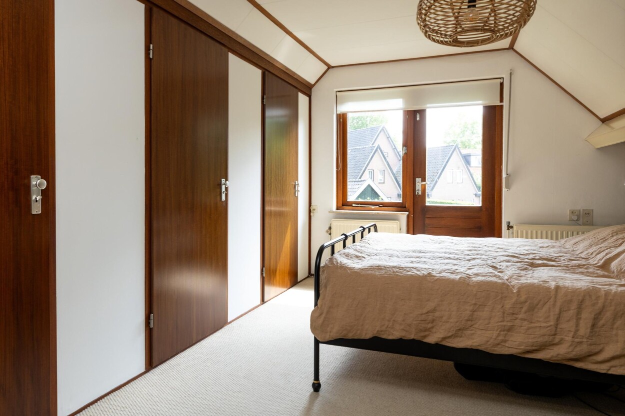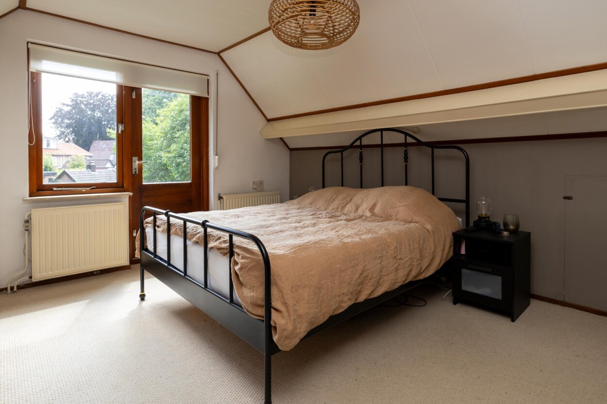 Overloop met ingebouwde kast en dakraam. Totaal zijn er drie slaapkamers, waarvan de ouderslaapkamer aan de achterzijde de grootste is met veel ingebouwde kasten, wastafel en een balkon. Tenslotte is er nog de tweede (originele) badkamer, voorzien van een toilet, wastafel en inloopdouche.