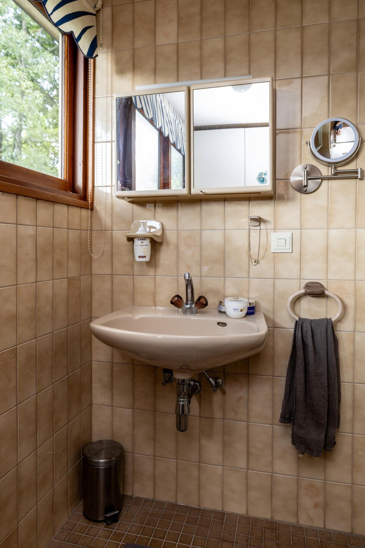 Achter op het perceel is er nog een geschakelde garage/berging, groot genoeg voor een auto. Doordat de woning op gepaste afstand ligt van de (toch al) rustige weg, woont u hier met veel privacy. Naast de woning ligt een diepe inrit voor meerdere auto’s. Achter de woning is veel ruimte en een besloten tuin. Als u linksom de oprit afloopt bent u in vijf minuten in het dorpscentrum van Nunspeet. Loopt u naar rechts de oprit af dan wandelt u in vijf minuten het bos in.