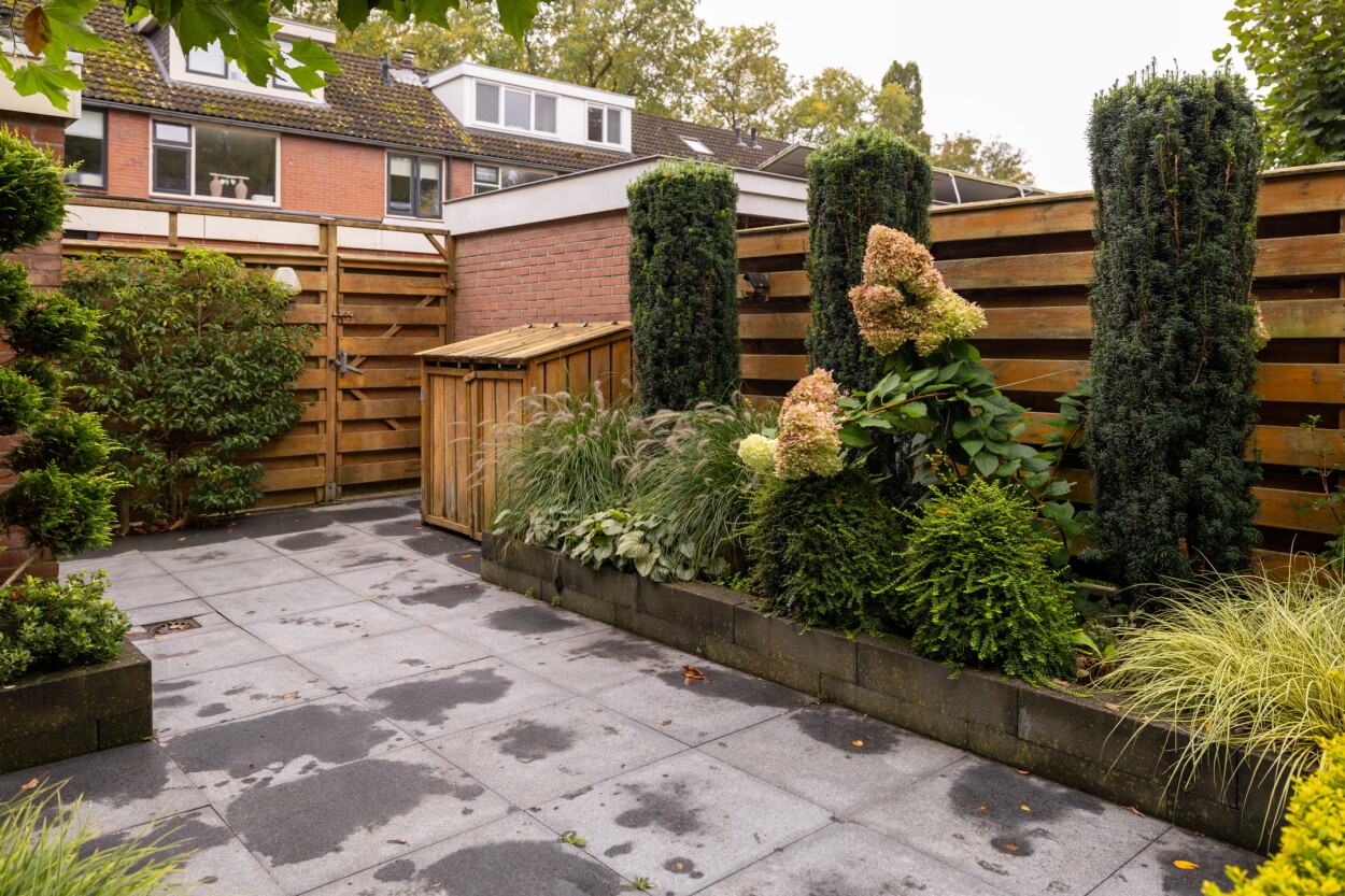 Zowel aan de voor- als achterzijde is een verzorgde en keurig aangelegde tuin te vinden. Beide tuinen zijn voorzien van sierbestrating en diverse borders met beplantingen. De achtertuin heeft een goede zonligging op het zuiden.