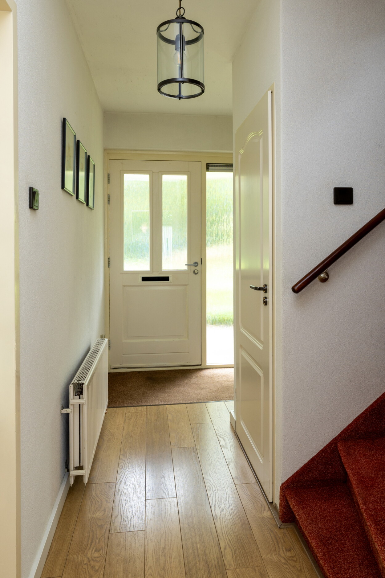 Bij binnenkomst via de entree aan de voorzijde komt u allereerst in de hal. In de hal treft u de meterkast, een garderobehoek, de toiletruimte en trappartij met trapkast. Vervolgens is er zowel toegang tot de keuken als de woonkamer. De woonkamer betreft een doorzonwoonkamer en heeft grote raampartijen aan de voor- en achterzijde. Zeker aan de voorzijde is er een heel fraai uitzicht over het groen. De vloer is afgewerkt met een nette laminaatvloer. Terug in de hal is er vervolgens nog toegang tot de keuken. Deze is aan de achterzijde gelegen en is geplaatst in een rechte opstelling met diverse inbouwapparatuur, waaronder een inductiekookplaat, koelkast, vaatwasser en combi-oven. Tevens is in de keuken de achterdeur te vinden met de toegang tot de achtertuin.
