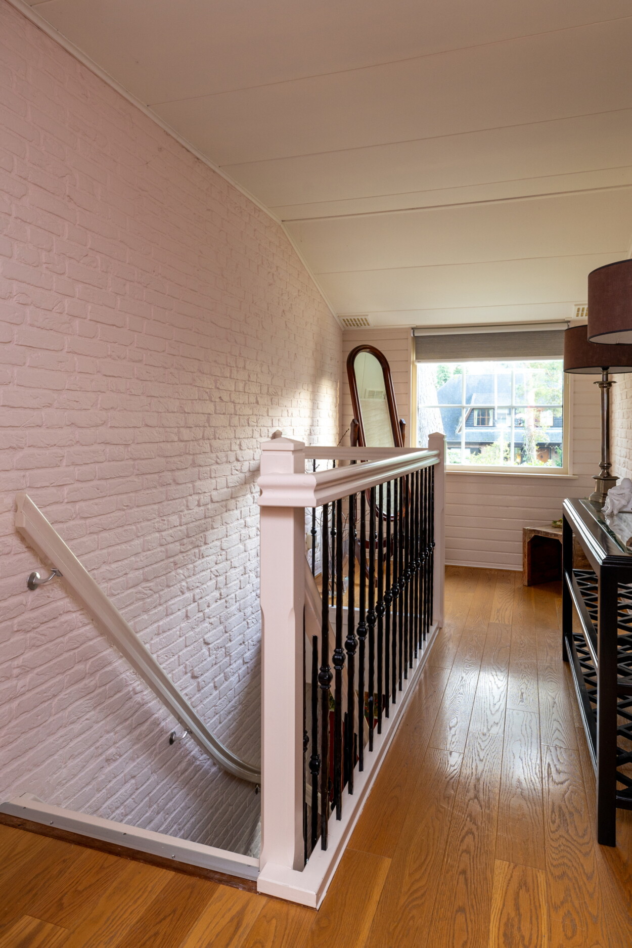 Vanaf de overloop heeft u toegang tot maar liefst vier slaapkamers en de tweede badkamer. De masterbedroom aan de zijkant van de woning is door de uitbouw zeer royaal te noemen. Deze kamer beschikt over een gashaard en veel bergruimte achter de knieschotten en heeft een grote vaste kastenwand. Gezien het formaat is deze kamer uitermate geschikt om te splitsen in meerdere slaapkamers indien gewenst. Aan de achterzijde bevindt zich een tweede ruime slaapkamer voorzien van een dakkapel en vaste kastenwand. De derde slaapkamer aan de voorzijde beschikt eveneens over een dakkapel en er is nog een vierde slaapkamer met doorgang naar de ruimte boven de garage. De moderne badkamer op deze verdieping is compleet uitgerust in prachtige Engelse stijl met een ligbad, douche, dubbele wastafel en een toilet.