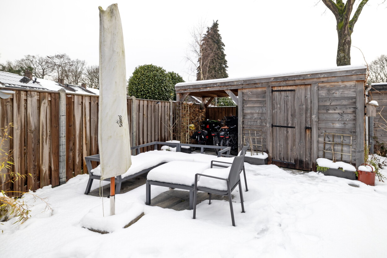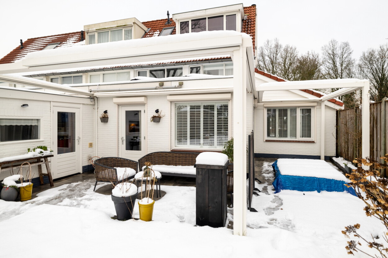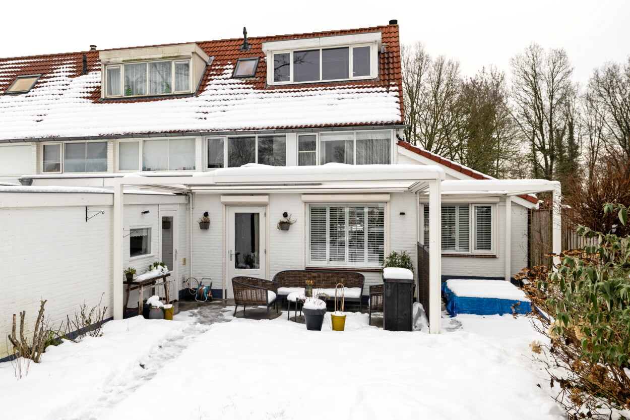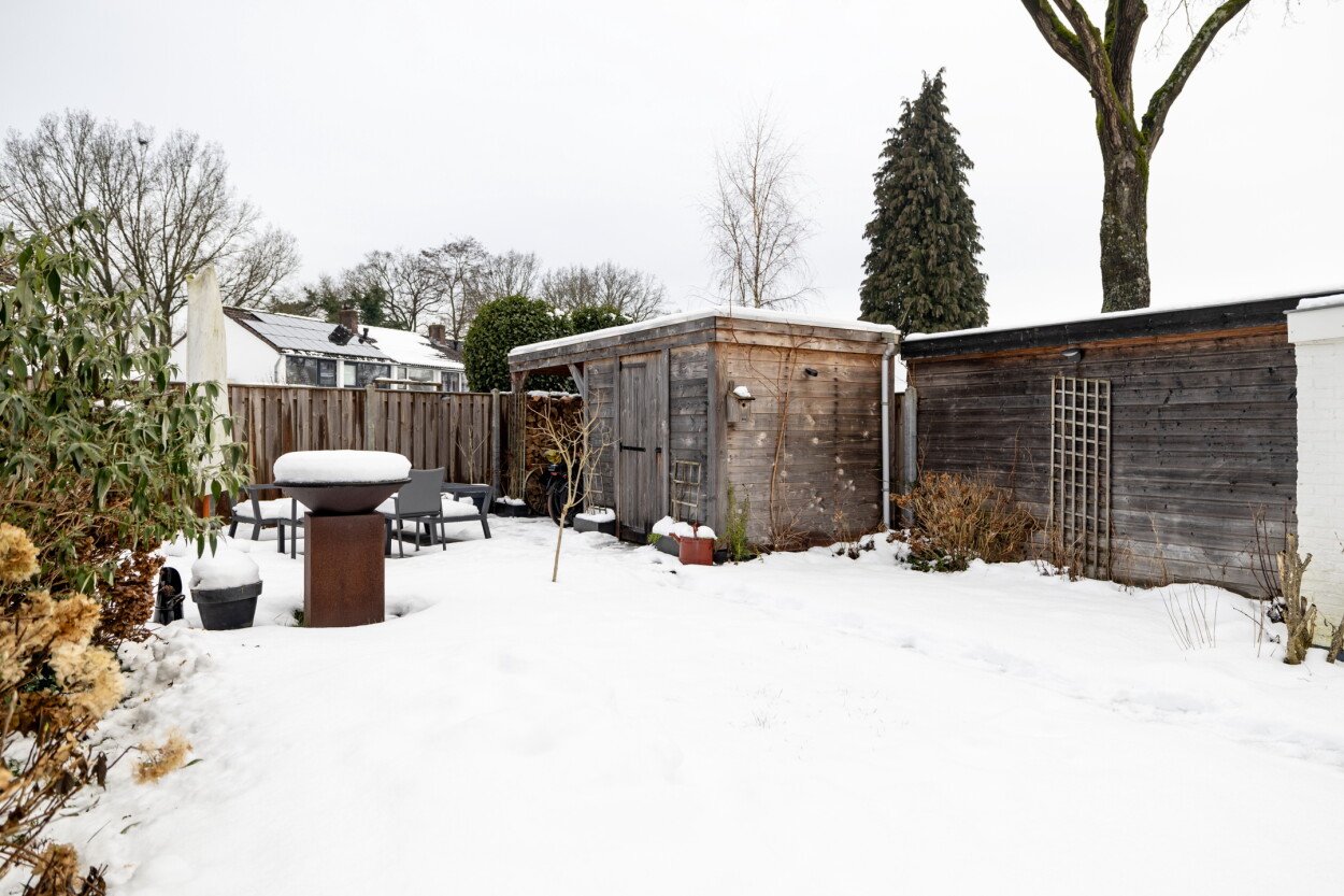 Voor de woning ligt een verzorgde voortuin met een oprit voor 1 auto. Achter de woning ligt een besloten en vooral heerlijke diepe achtertuin met een achterom. Aan de woning zijn een tweetal veranda’s gebouwd die middels screens af te sluiten zijn.
