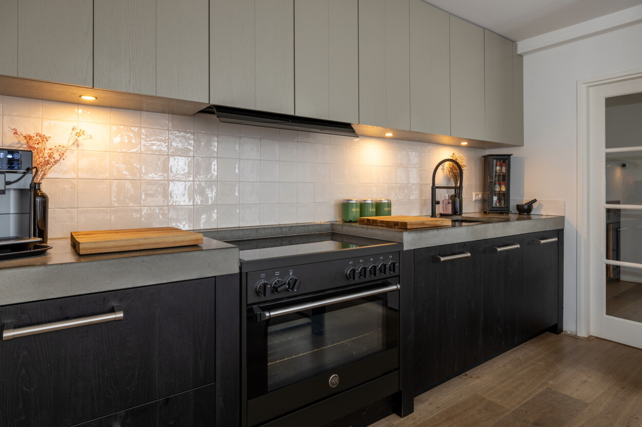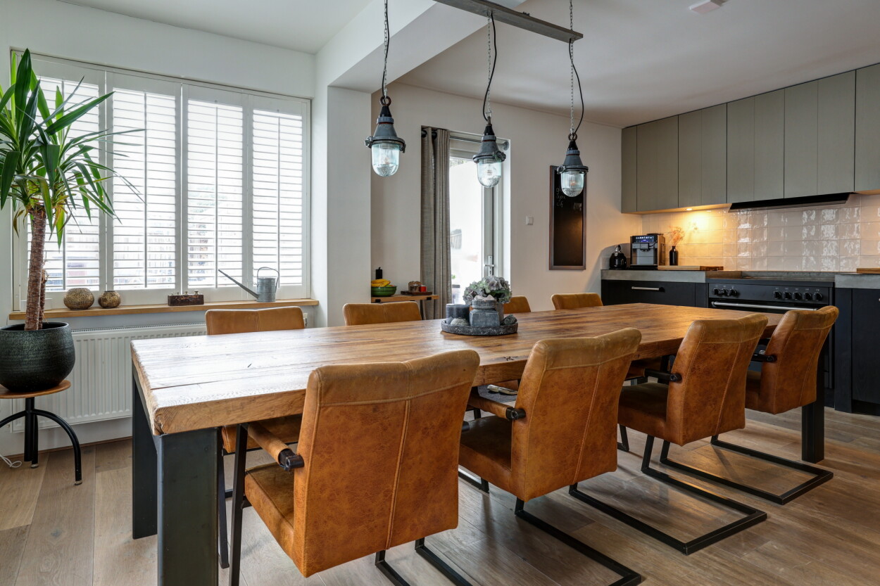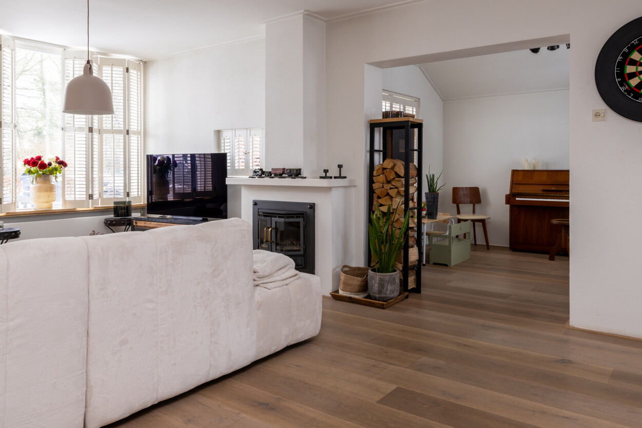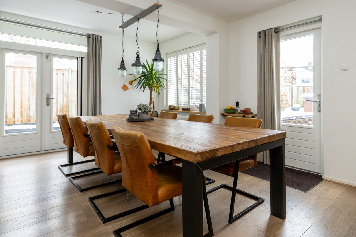 Entree, hal met toilet, trappartij en een kelderkast met vernieuwde meterkast. De speels ingedeelde woonkamer is een sfeervolle ruimte en ingedeeld als een gezellige zitkamer aan de voorzijde rondom de houtkachel. Doordat de voormalige garage naast de woning bij de woonkamer is getrokken, is er een leuke hoek in de woonkamer ontstaan wat een ideale werkplek is of een heerlijke lounge-/speelkamer. De aanbouw aan de achterzijde is ook een grote meerwaarde. Dat is een fantastische woonkeuken geworden, waar een grote eethoek in kwijt kan en openslaande deuren zorgen voor ‘contact’ met de diepe achtertuin. Daar is overigens eerst een praktische veranda die geheel af te sluiten is aan de boven-/achter-/zijkant met screens. De woonkeuken is voorzien van een luxe keukenopstelling die in 2024 nog vernieuwd is en voorzien is van een grote koelkast, vriezer, vaatwasser, inductie kookplaat en een oven. Vanuit de keuken is via de veranda de aangebouwde bijkeuken bereikbaar, met daar de aansluitingen voor wasapparatuur.