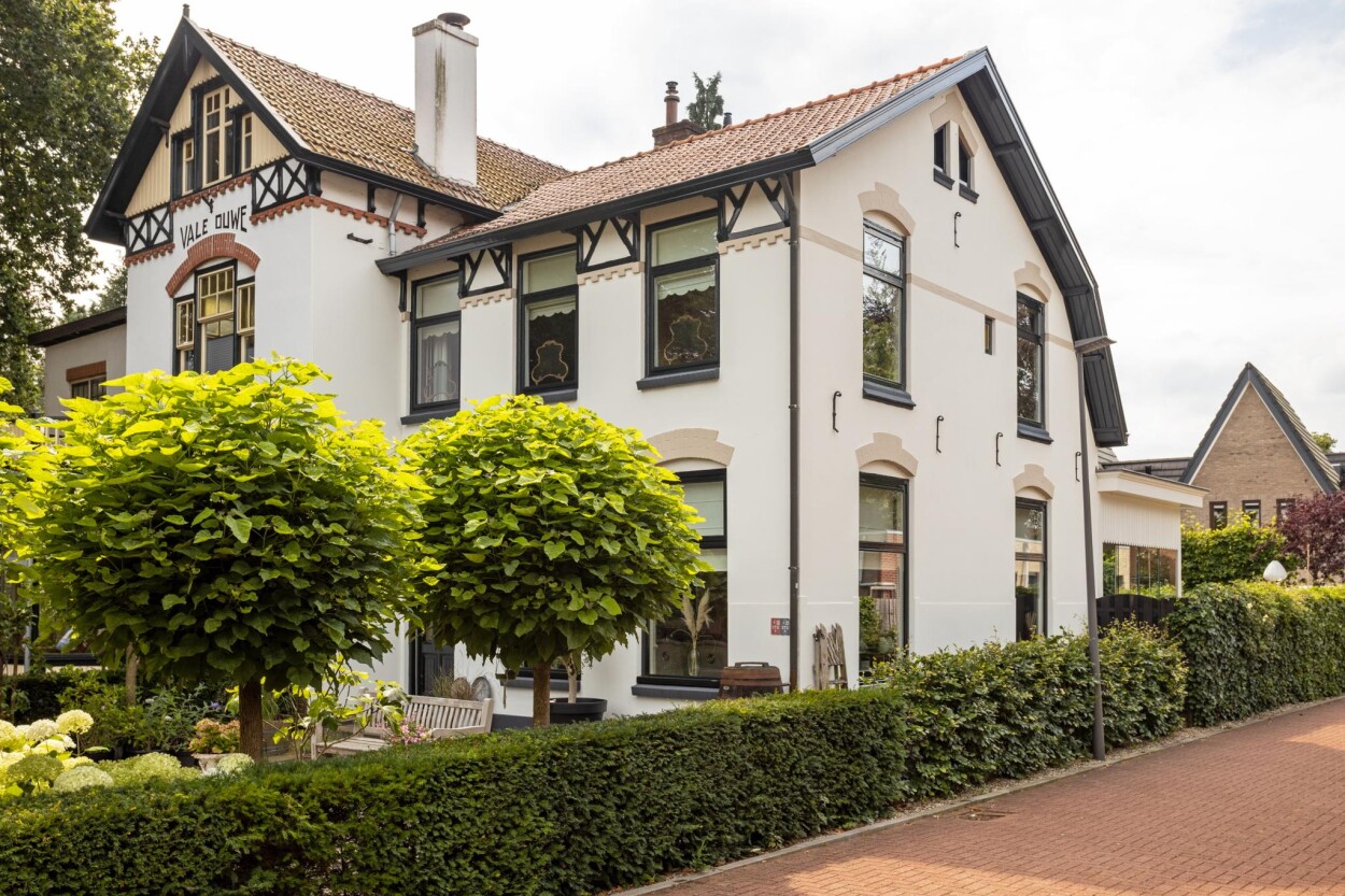 Onmiddellijk bij de bosschen! die tekst prijkte ooit in de advertentie van “Pension Lautenbach”. Begin 1900 was het hier mogelijk om kamers te huren, maar vandaag de dag mogen wij u dit BIJZONDER KARAKTERISTIEK GESCHAKELD HERENHUIS te koop aanbieden. De locatie vlakbij de bossen en het karakter is gelukkig onveranderd gebleven. Daarbij is de locatie in de loop der jaren alleen maar fraaier geworden. U woont hier in het dorpscentrum, op loopafstand van de winkels, horeca en andere voorzieningen. Tegelijkertijd wandelt u straks door de fraaie nieuwe stationsomgeving zo richting de bosrand van Nunspeet voor een heerlijke boswandeling. Een fantastische woonomgeving met voor ieder wat wils! De woning is naar schatting begin vorige eeuw gebouwd, waarbij heel veel authentieke details bewaard zijn gebleven. Door de gehele woning zijn details zoals hoge plafonds met ornamenten en sierlijsten, fraaie balkenplafonds, originele tegelvloeren en allerhande degelijk houtwerk goed bewaard gebleven. De woning is door de huidige en vorige eigenaren uitstekend onderhouden en tevens ook diverse keren gerenoveerd, verbeterd en verduurzaamd. Er is vrijwel overal HR++ beglazing en de woning beschikt over dakisolatie, muurisolatie en 8 PV-panelen. Ook is er verrassend veel woonruimte. Op de begane grond is de voormalige kamer en suite met sierplafonds en een visgraat-parketvloer toch wel de eyecatcher. Een heerlijk zitgedeelte aan de achterzijde met aan de voorzijde een eethoek met uitzicht op de levendige Stationslaan. Verder treft u gelijkvloers uiteraard de keuken met aangrenzend nog een comfortabele serre met houtkachel. De bovenverdieping is praktisch ingedeeld met drie slaapkamers, een badkamer, separate toiletruimte en een ruime overloop met daar zelfs een werkplek. Ook is er nog een zolder die uitstekend dient als opslag voor uw spullen. Zowel aan de voor- als achterzijde is een heerlijke tuin te vinden. Aan de voorzijde is er voldoende ruimte voor het parkeren van uw auto(s) en is er een fijn zitje om te genieten van de levendigheid van het dorp. Aan de achterzijde kunt u juist weer in alle rust en privacy genieten van het buitenleven of u even terugtrekken in de serre. We doen deze woning te kort om het hier te kunnen omschrijven en nodigen u daarom van harte uit om deze buitenkans te komen bezichtigen!