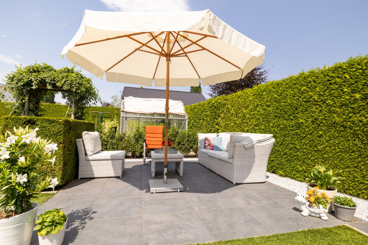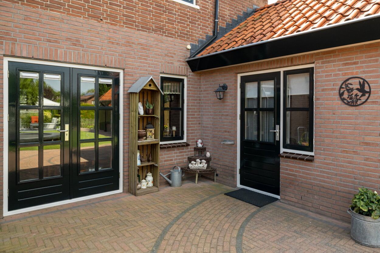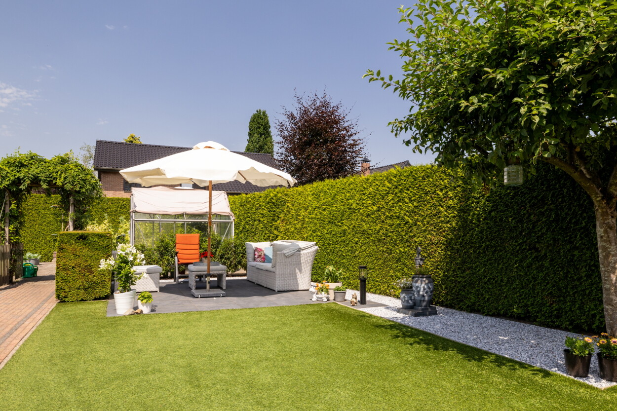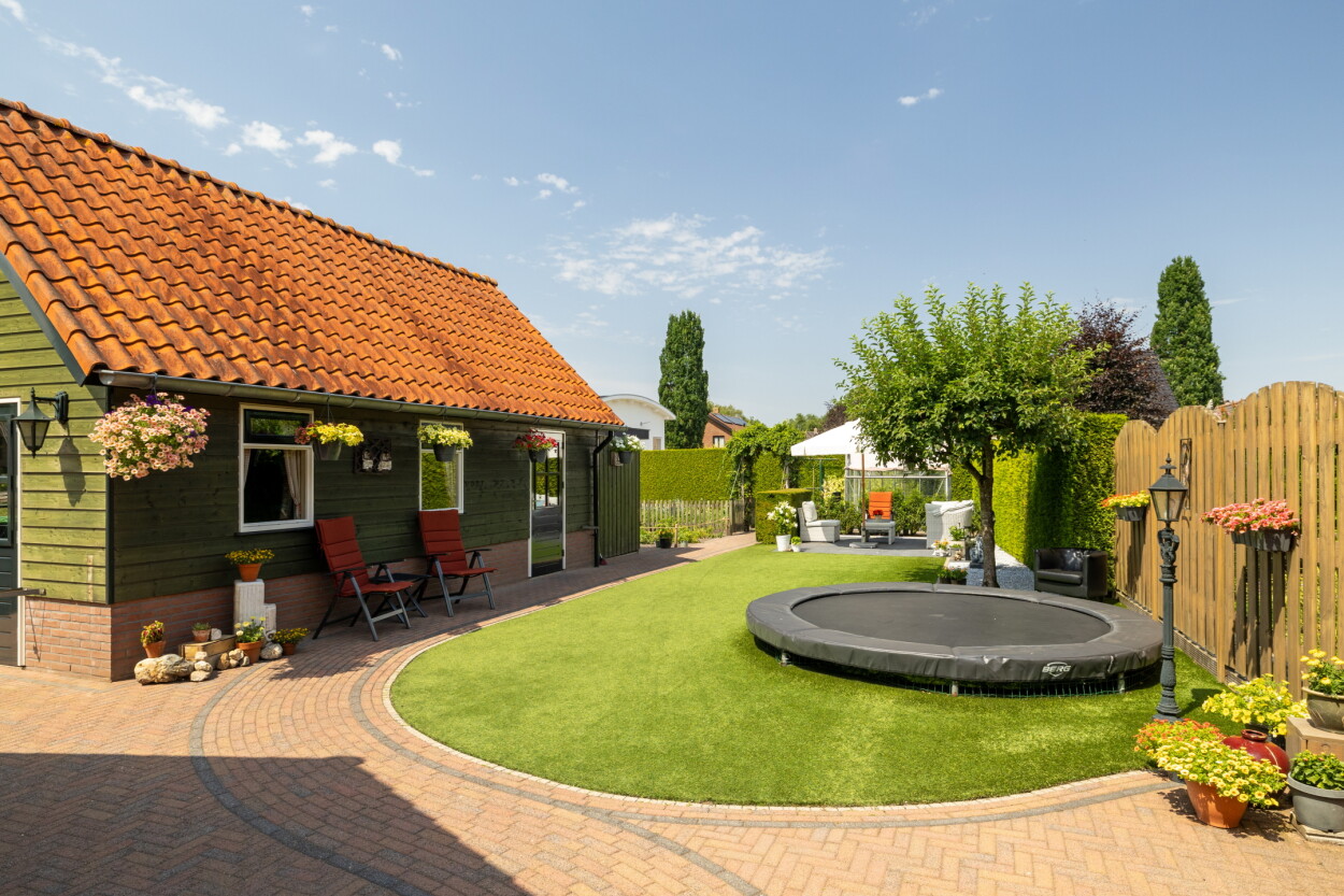 Tuin: De voortuin is keurig en onderhoudsvriendelijk aangelegd met kunstgras en diverse borders. Aan de zijkant van de woning bevindt zich een brede oprit, afgewerkt met grind, die moeiteloos parkeergelegenheid biedt voor meerdere auto's. De diepe achtertuin is gelegen op het noorden en is eveneens onderhoudsvriendelijk aangelegd. Door de royale diepte van de tuin geniet u hier van veel privacy en zijn er altijd verschillende plekjes te vinden waar u heerlijk kunt zitten, zowel in de zon als in de schaduw. Er zijn verschillende terrassen, waar je heerlijk zitjes kunt creëren en achterop het perceel is er een ruime moestuin aanwezig.