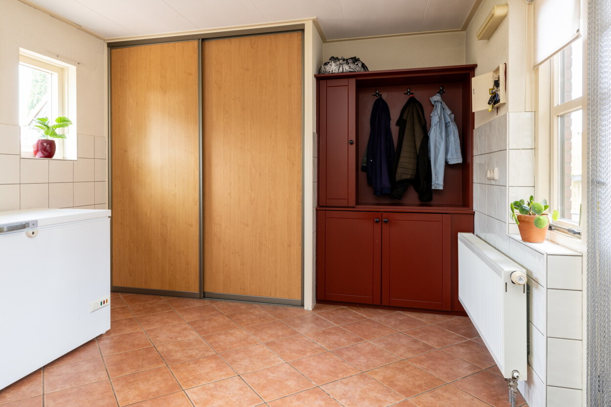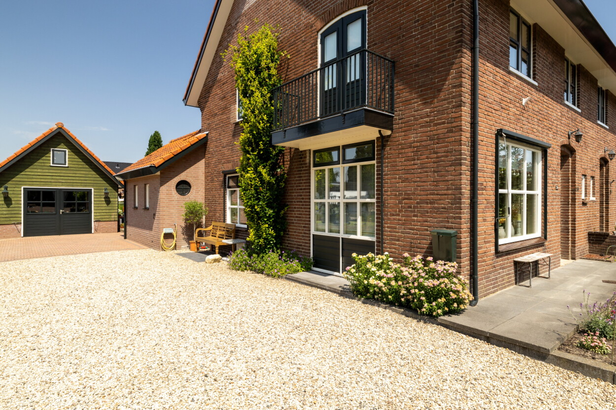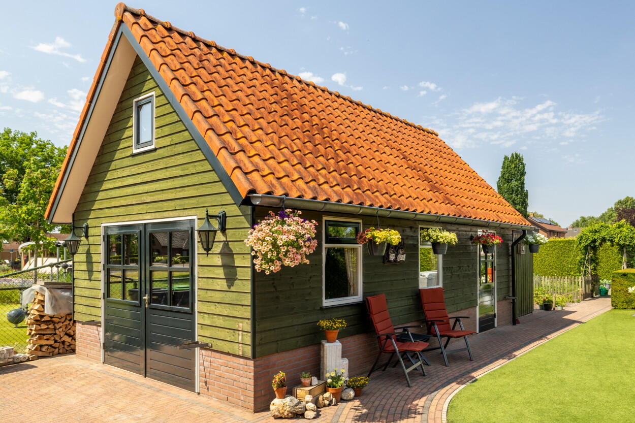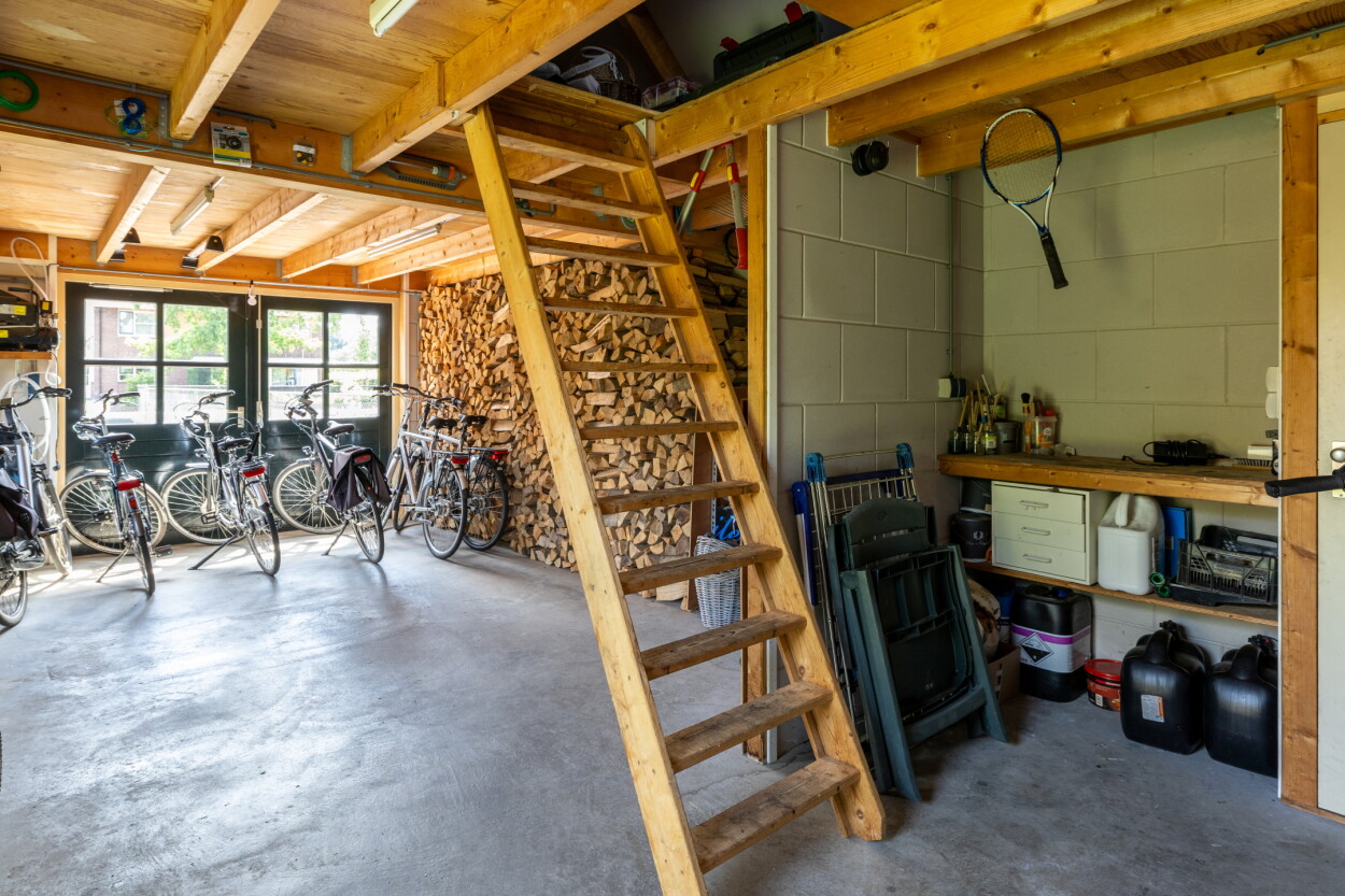 Op het perceel staat een grote, vrijstaande stenen garage (circa 7 x 4 meter). Dit robuuste bijgebouw is in 2005 gerealiseerd en destijds direct volledig geïsoleerd. De garage beschikt over een handige bergzolder en is momenteel deels omgebouwd tot een comfortabele hobby-/werkruimte. Een ideale toevoeging voor bijvoorbeeld een praktijkruimte.
