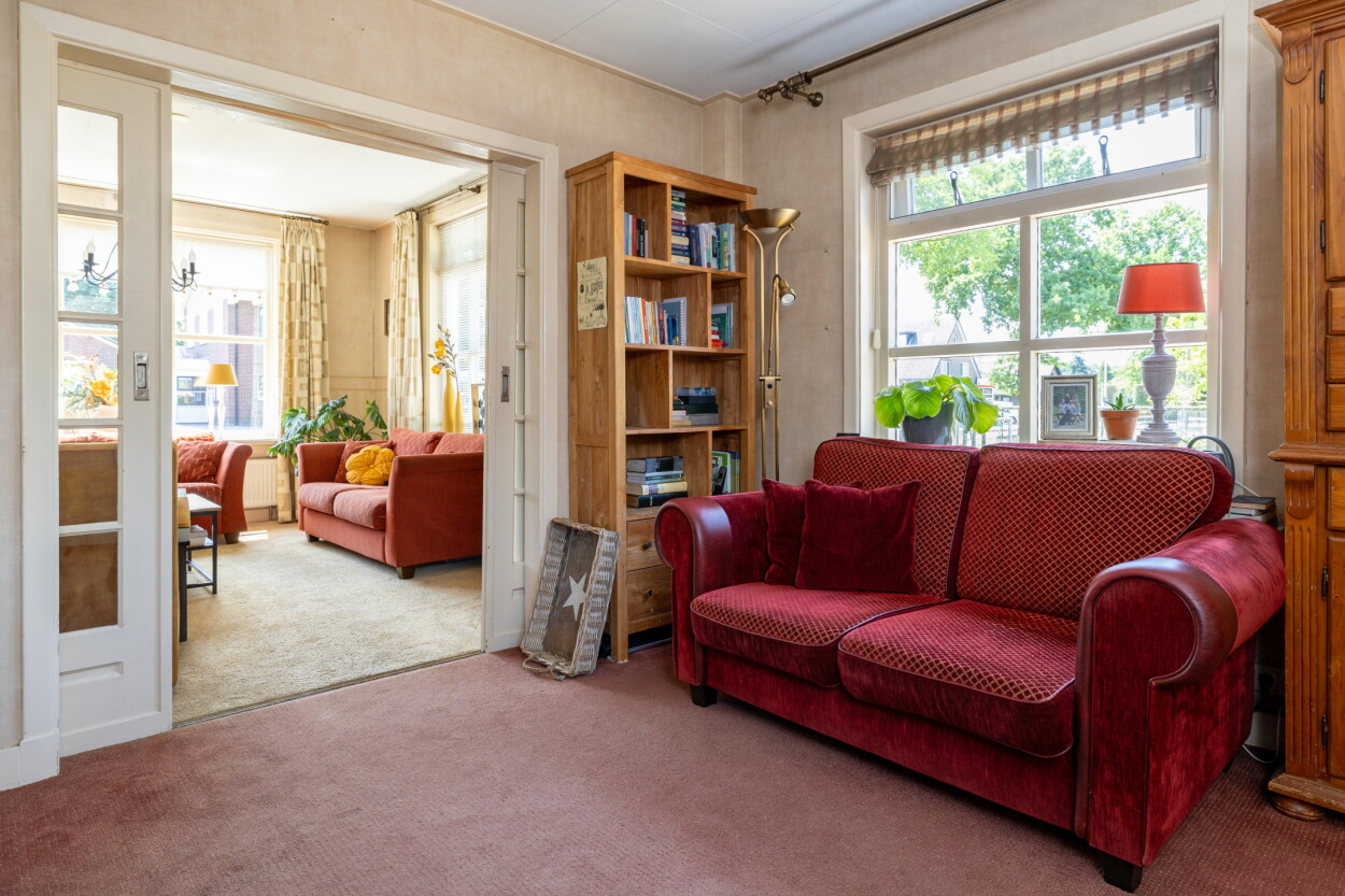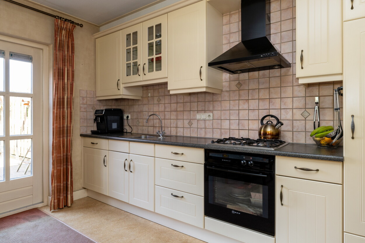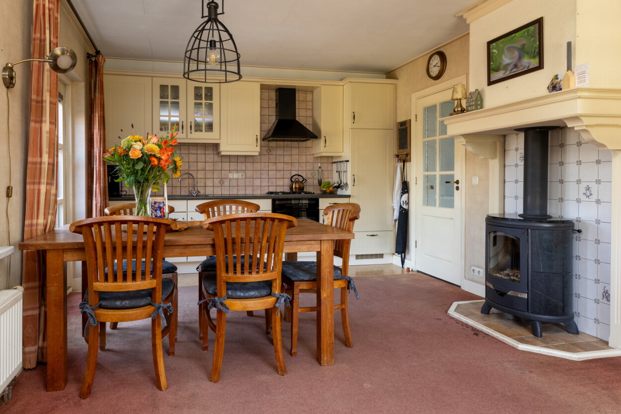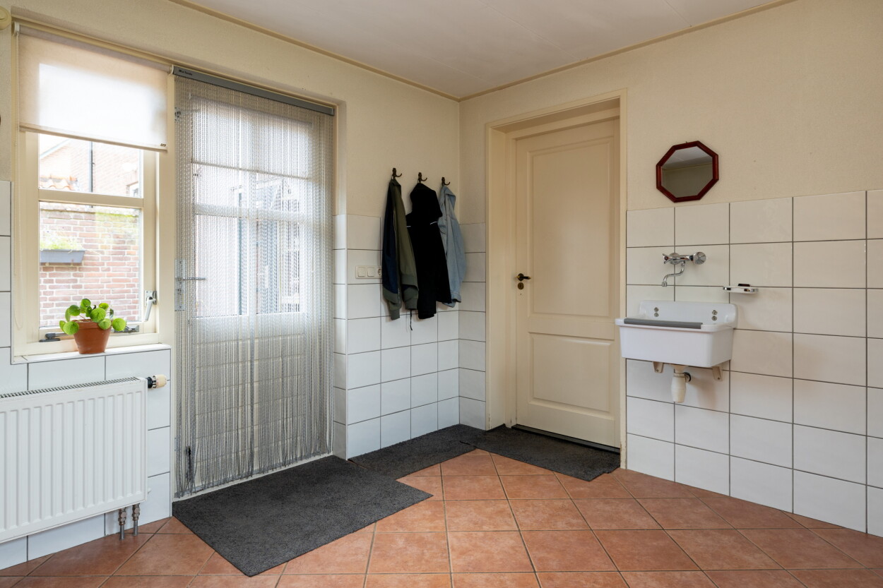 Begane grond: U betreedt de woning via de entree/hal, waar zich de meterkast, een keurig toilet, de trapopgang en een praktische trapkast met toegang tot de kelder bevinden. Via de keuken bereikt u de sfeervolle woonkamer aan de voorzijde. Deze ruimte geniet van veel natuurlijk lichtinval dankzij de grote ramen met fraaie roedeverdeling en wordt sfeervol verwarmd door een gezellige gaskachel. Middels elegante ensuite deuren heeft u toegang tot de ruime woonkeuken aan de achterzijde met dubbel openslaande deuren. De keuken is geplaatst in een rechte opstelling en is voorzien van diverse inbouwapparatuur, waaronder een vaatwasser, gaskookplaat, oven, koelkast en een afzuigkap. Aansluitend bereikt u de handige bijkeuken met witgoedaansluitingen een wastafel en een hele ruime vaste kastenwand, ideaal voor extra opslag en praktisch gebruik. Tevens is vanuit deze ruimte de achtertuin bereikbaar.