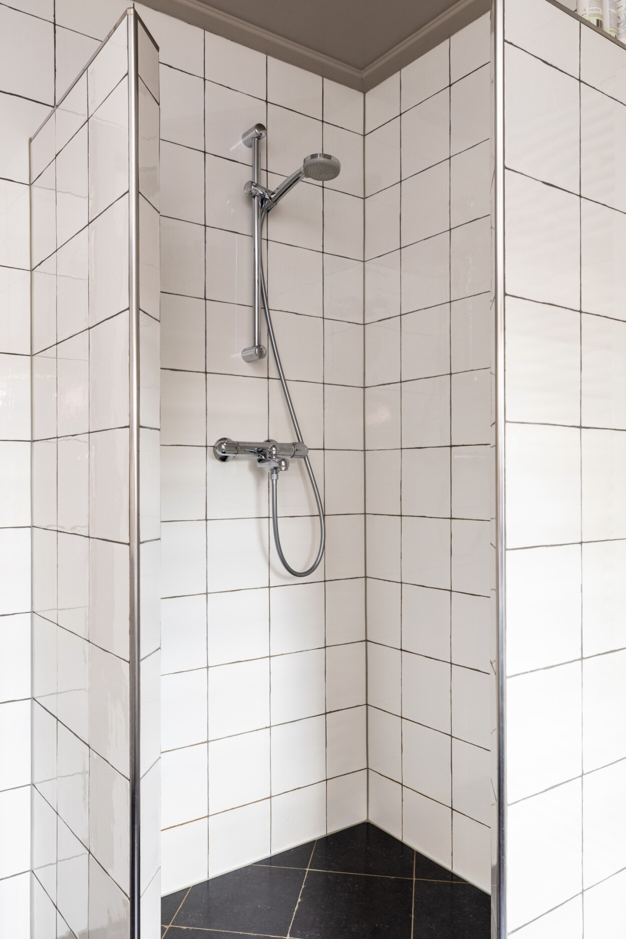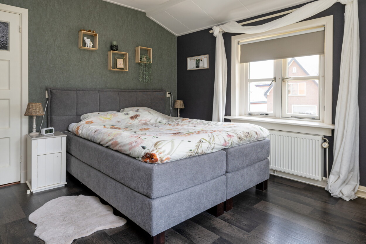 Eerste verdieping: Vanaf de overloop heeft u toegang tot drie keurige slaapkamers en de badkamer. De royale hoofdslaapkamer is gelegen aan de voorzijde, beschikt over een vaste inbouwkast en biedt toegang tot het karakteristieke balkon. Aan de achterzijde bevinden zich nog twee prima slaapkamers, welke eveneens beide zijn voorzien van handige vaste kasten. De badkamer is functioneel ingericht, netjes verzorgd en uitgerust met een wastafel, een douche en een toilet.