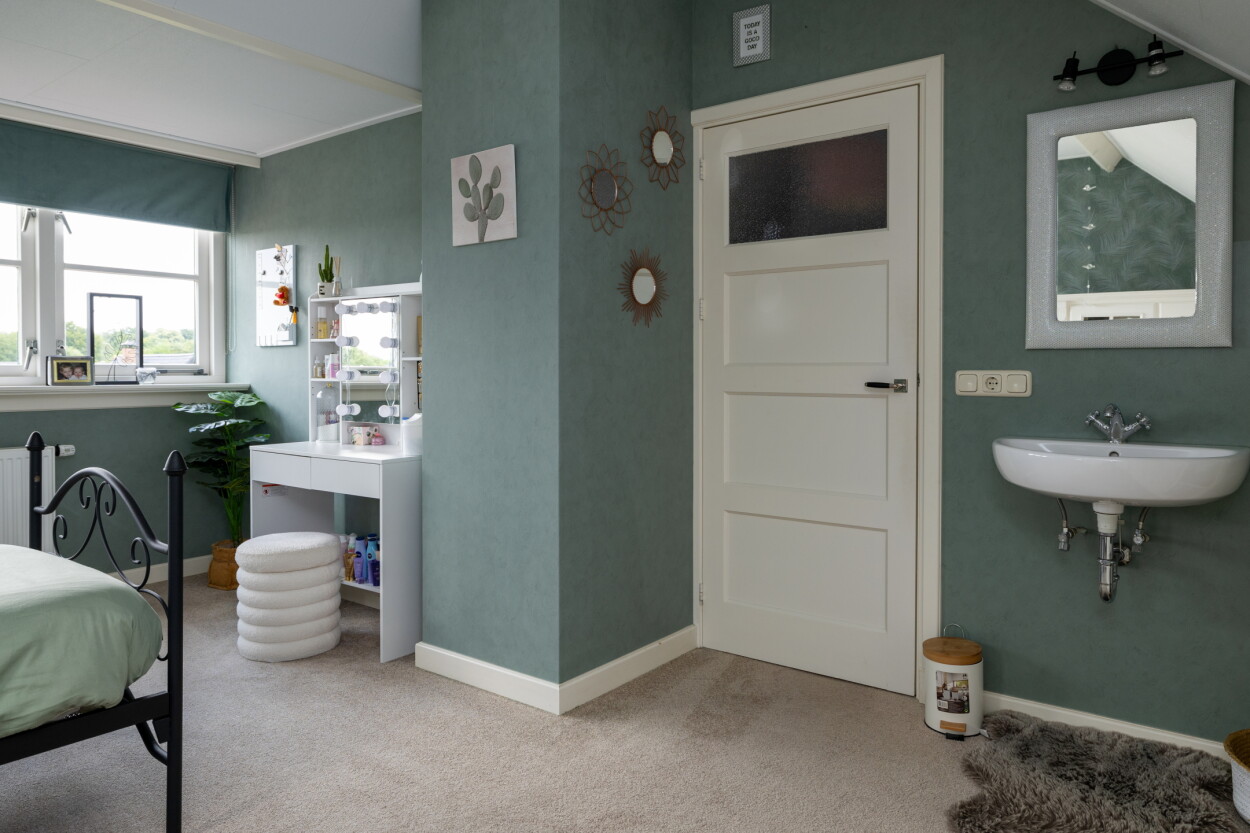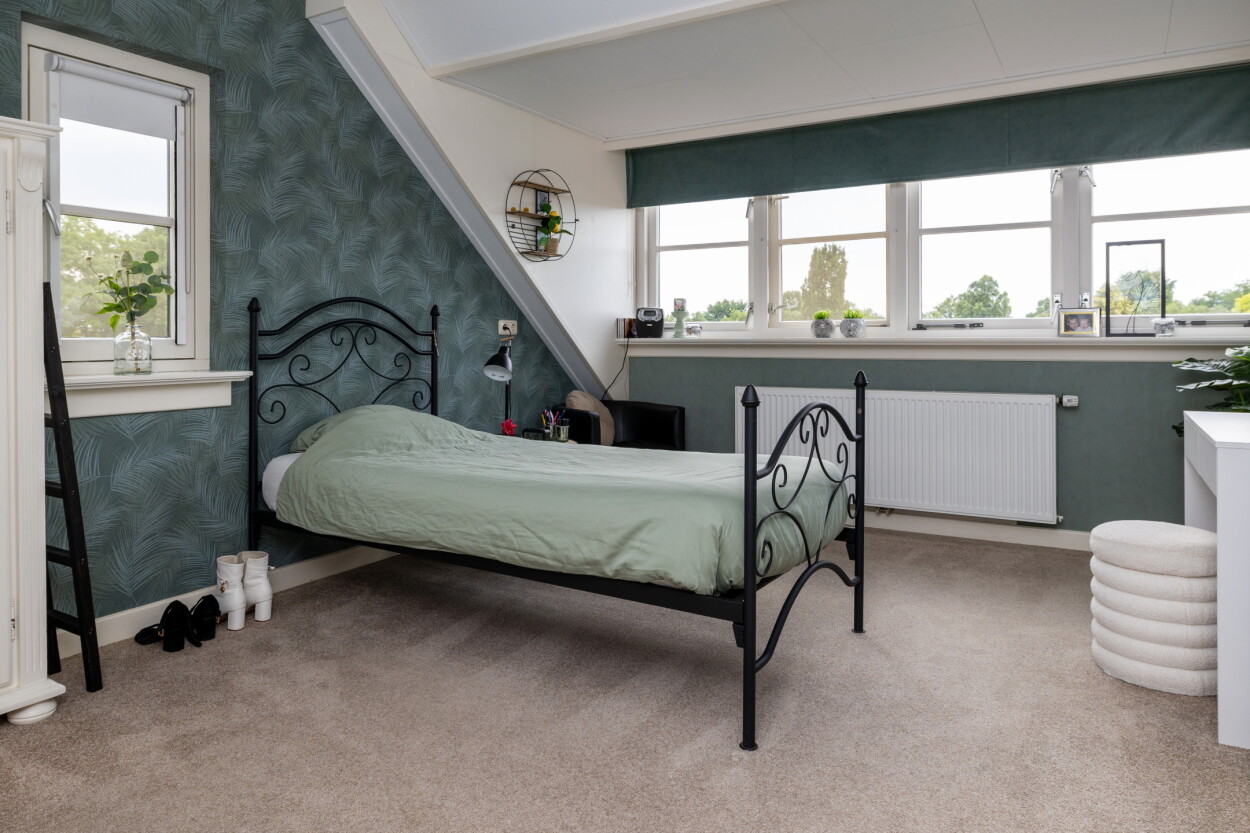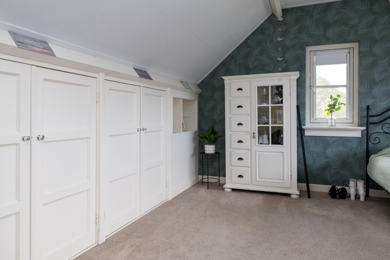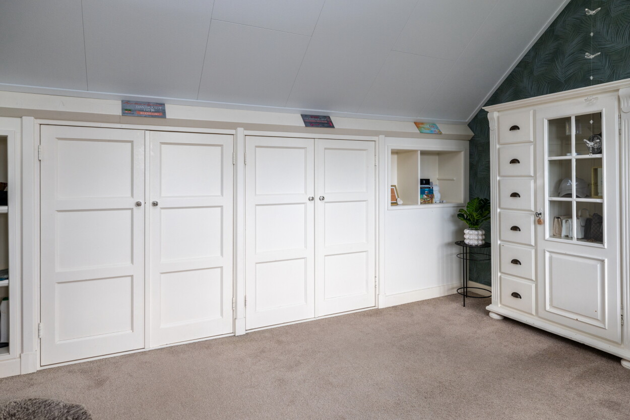 Tweede verdieping: Middels een vaste trap bereikt u de verrassend ruime tweede verdieping. U komt eerst op de voorzolder, waar zich tevens een separate technische ruimte bevindt met de cv-opstelling. Dankzij de royale dakkapel is hier een fantastische vierde slaapkamer gecreëerd. Deze zolderkamer is heerlijk ruim en licht. Achter de knieschotten is bovendien volop extra bergruimte aanwezig voor spullen die u niet dagelijks nodig heeft.